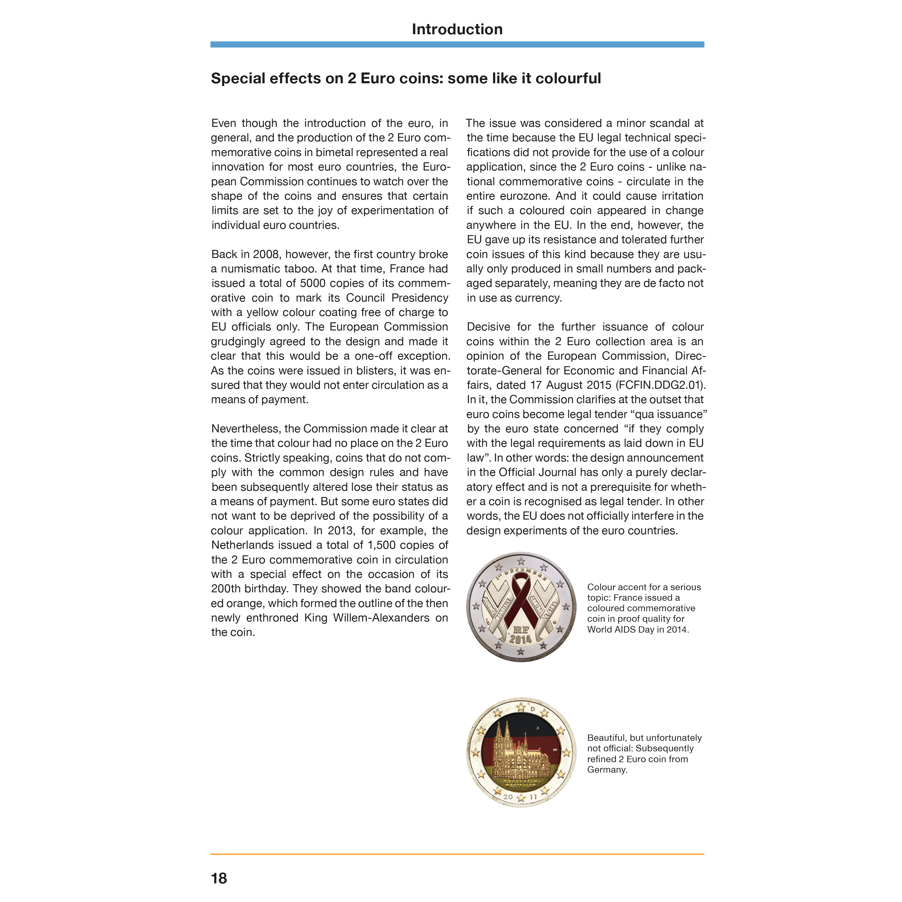 La introducción del euro ha creado una zona de coleccionismo transfronterizo con muchos millones de coleccionistas entusiastas, y desde 2004 toda Europa vive la fiebre del coleccionismo de monedas de dos euros: los Estados del euro pueden adaptar la cara nacional de sus monedas de dos euros para conmemorar acontecimientos, edificios o personalidades significativas. Hasta ahora se han acuñado más de 400 motivos diferentes, y muchas rarezas dormitan en el cambio.