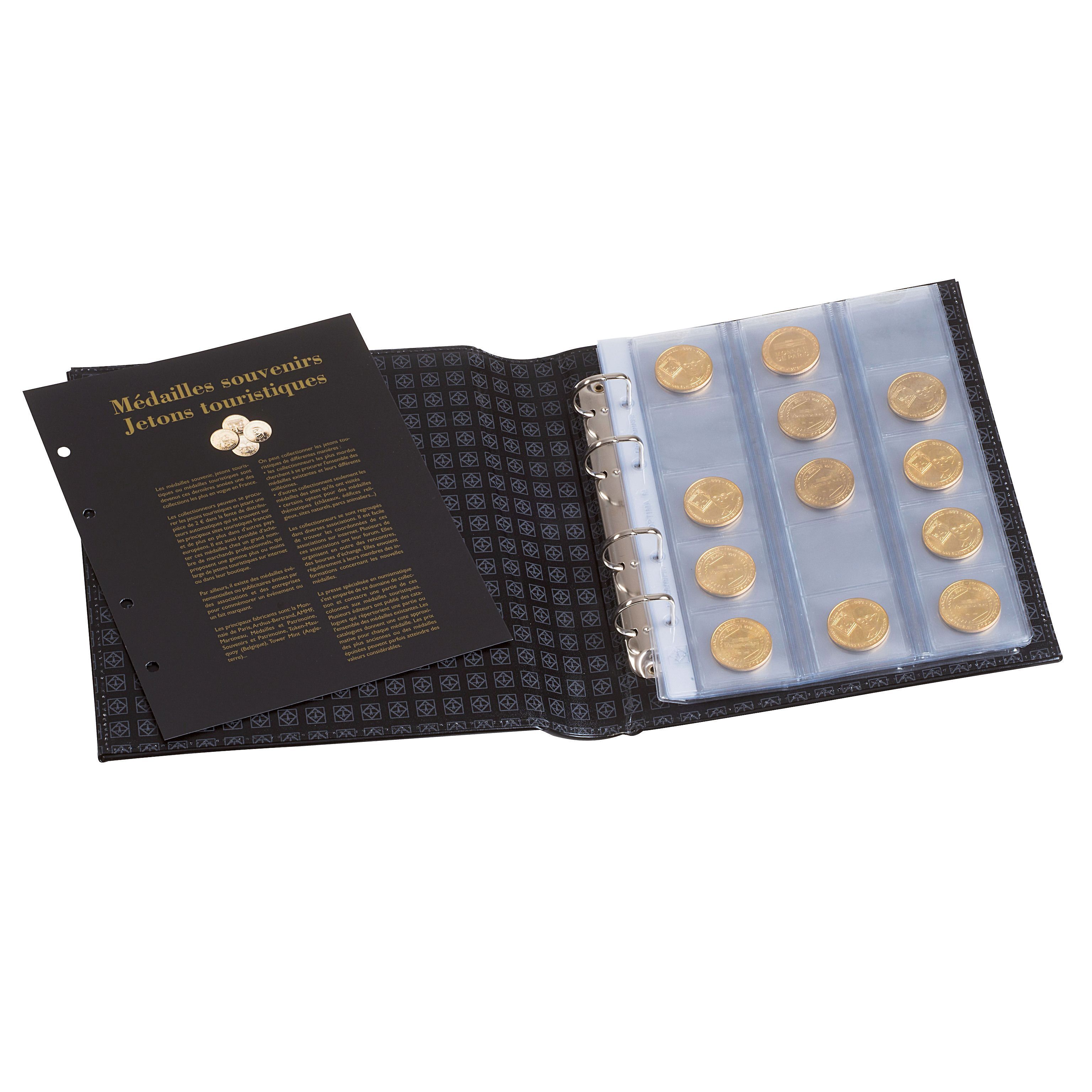 Álbum para guardar de forma segura y elegante 75 medallas-souvenir francesas ("Médailles Souvenirs"). Con 5 fundas OPTIMA transparentes y resistentes para guardar en cada una 15 medallas-souvenir. El álbum se puede ampliar con más fundas OPTIMA. Capacidad máxima: 15 fundas para guardar un total de 225 medallas-souvenir. Incluye una hoja con información sobre las medallas. Con preciosos grabados en el lomo y en la tapa. Con un sólido mecanismo de 4 anillas D. Color de las tapas: negro.