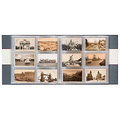 Album nostálgico para guardar hasta 600 tarjetas postales históricas de formato hasta 145 x 95 mm. Contiene 50 fundas firmemente encuadernadas con capacidad de 12 tarjetas cada una (si se usan las fundas por ambas caras). Cada funda ofrece una protección máxima contra la suciedad. Fundas transparentes y sin plastificantes para observar las tarjetas por ambos lados. Encuadernación de diseño de tarjetas postales históricas con símbolos de todo el mundo. Formato exterior: 375 x 343 x 55 mm.