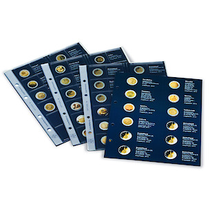 Contenido: 10 hojas OPTIMA y 11 hojas preimpresas. Contiene los siguientes temas: emisiones conjuntas de 2 euros con motivo del “50º aniversario de los Tratados de Roma”, “10 años de la UEM”, “10º aniversario de la puesta en circulación del euro” , "50 años del Tratado del Elíseo" y "30 años EU-Flagge" teniendo en cuenta las 5 cecas alemanas (A, D, F G, J). Álbum con cajetín protector.