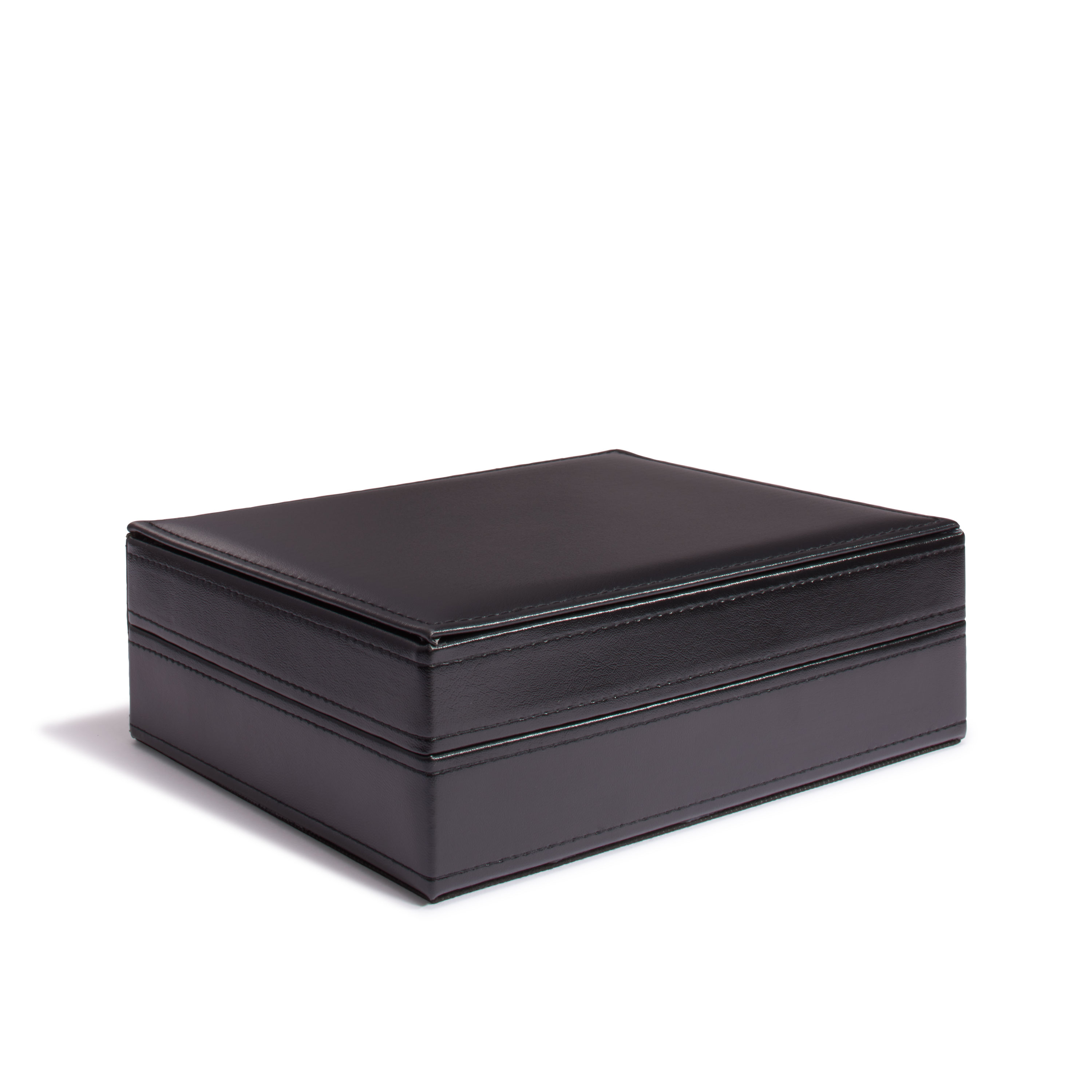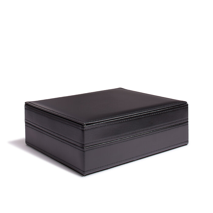 Estuche negro acolchado en polipiel para 100 cápsulas QUADRUM. Incluye 4 “fijadores” que sirven para fijar las filas que no estén completamente llenas (para que las cápsulas no se muevan). También apto para guardar apróximadamente 320 cartones de monedas (50 x 50 mm).