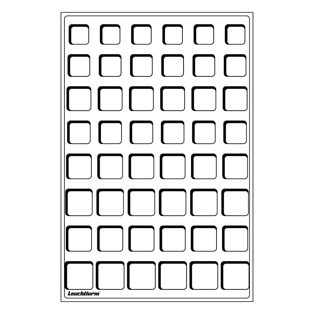 Nuestras bandejas para monedas tienen 48 compartimentos cuadrados cada una para guardar hasta seis juegos completos de monedas de euro, con y sin cápsulas. Las bandejas tienen una superficie aterciopelada y son adecuadas para los estuches Cargo L6, Cargo L12 (vacío) y el estuche para monedas L. Este juego consta de dos bandejas para monedas, cada una con 48 compartimentos para seis juegos completos de monedas de euro. Las bandejas están flocadas en azul oscuro y miden 334 x 220 x 20 mm. Tienen una base de cartón resistente para presentar sus monedas con seguridad y estilo.