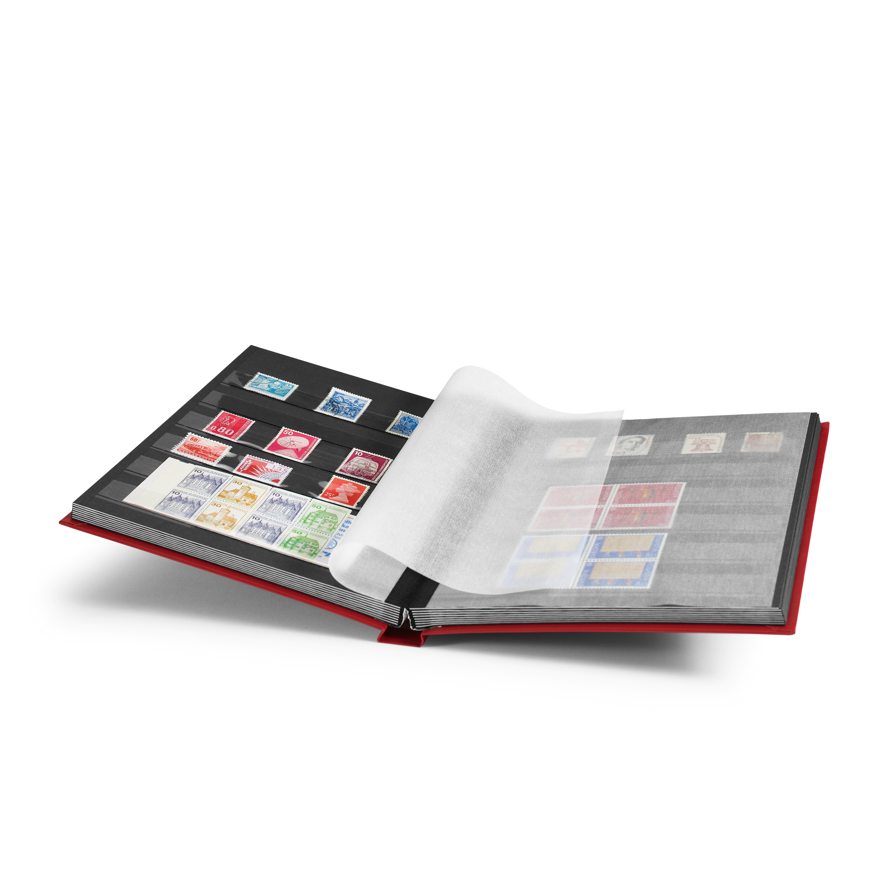 Clasificador BASIC en formato A5*, 32 hojas negras, tapa no acolchada, 6 bandas transparentes cada hoja, hojas separadoras dobles, encuadernación fija.