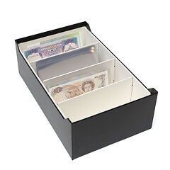 La «Logik Box» ofrece una forma práctica de guardar y organizar billetes. Con un tamaño compacto cabe fácilmente en cualquier armario o caja fuerte, y su diseño apilable permite guardar juntas varias cajas. Cada caja ofrece capacidad para varios billetes y dispone de una ventana transparente para poder ver e identificar los billetes de forma rápida y sencilla.