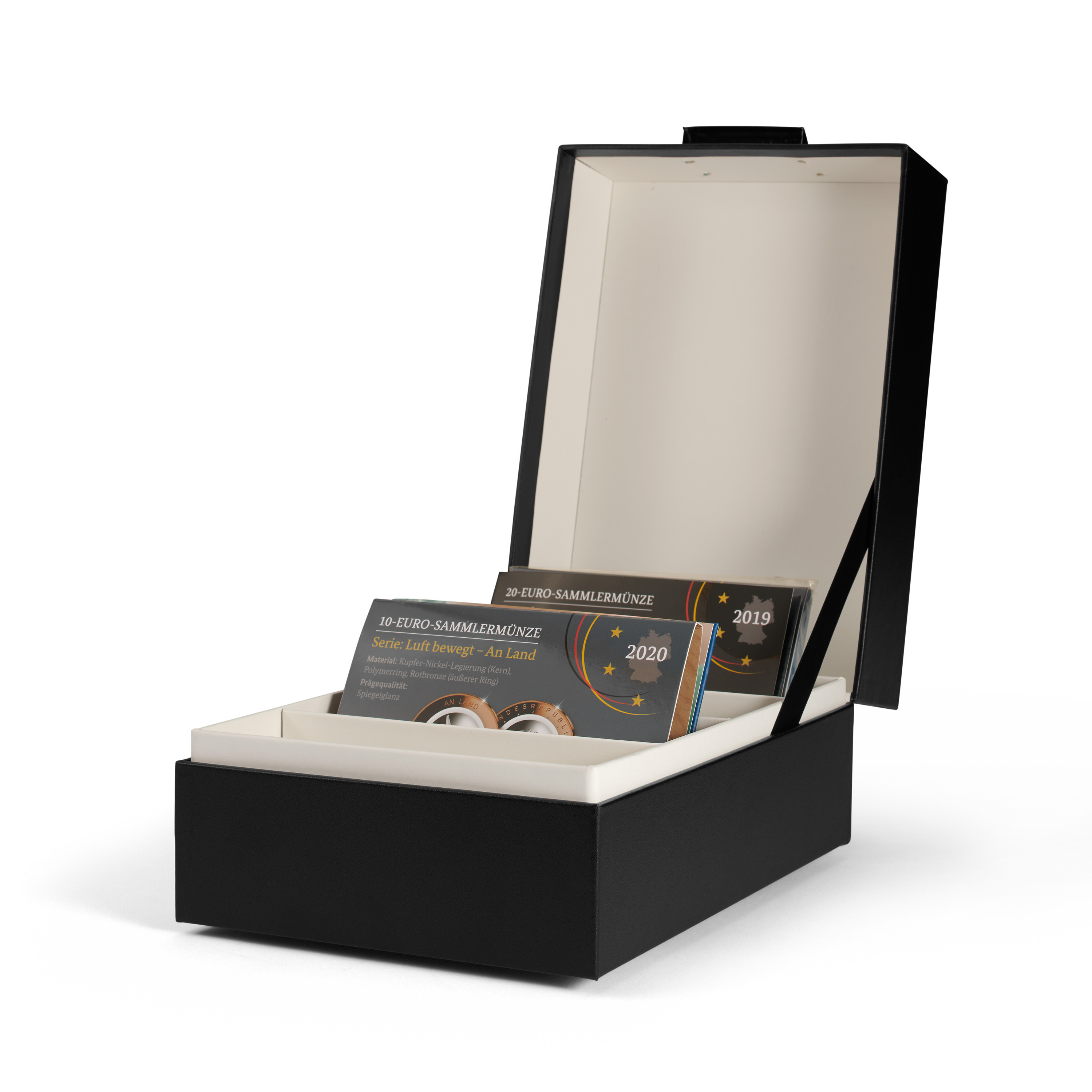 Capacidad: aprox. 700 postales, 450 cartas, 500 fichas clasificadoras, 700 fichas informativas, 750 fundas de billetes pequeñas, series de monedas y más. Tamaño exterior: 180 x 126 x 270 mm