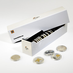 Presente sus valiosas monedas de plata de forma elegante y segura con este estuche para monedas de alta calidad. Con espacio para hasta 25 monedas de plata en cápsulas, esta caja ofrece la solución de almacenamiento ideal para coleccionistas y numismáticos. Diseñada para alojar cápsulas de monedas Leuchtturm Grips con un diámetro interior de 38-41 mm, esta caja garantiza que sus monedas se guarden de forma ajustada y protegida. La tapa deslizante garantiza un fácil acceso a su colección, mientras que las barras interiores permiten una clasificación organizada. Con un tamaño exterior de 290 x 63 x 68 mm, la caja ofrece una solución de almacenamiento compacta pero espaciosa para sus valiosas monedas de plata. Ya sea como objeto de coleccionista o para mantener a salvo su inversión, el estuche para monedas combina funcionalidad con elegancia y es un accesorio esencial para cualquier amante de las monedas.