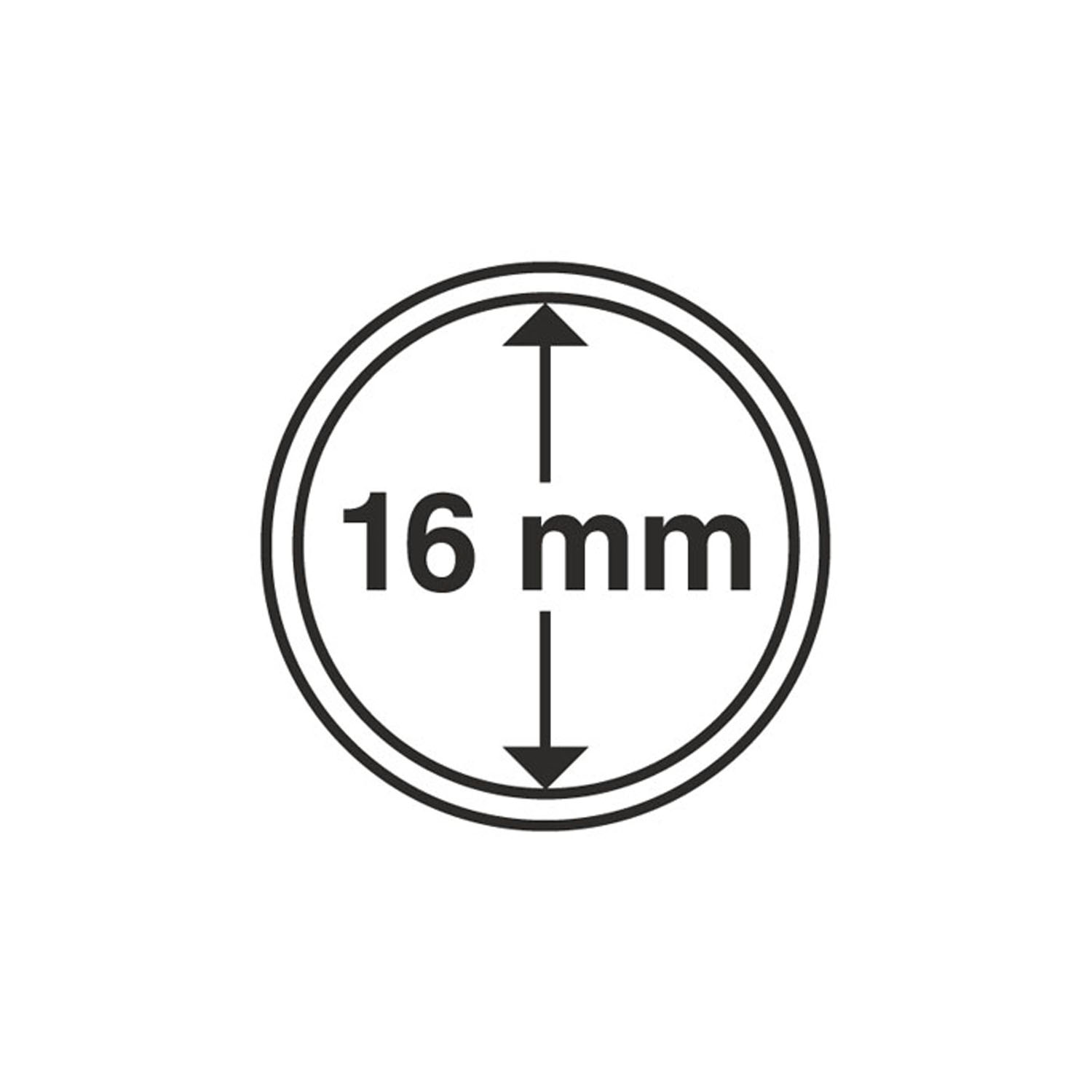 Cápsulas de monedas LEUCHTTURM: la protección ideal para sus mondedas! Cápsulas de alta calidad y plexiglás muy resistente. Se abren fácilmente, cierre seguro. Color: transparente. Diámetro interior: 16 mm, diámetro exterior: 22.5 mm. Altura interior: 2.7 mm aprox.