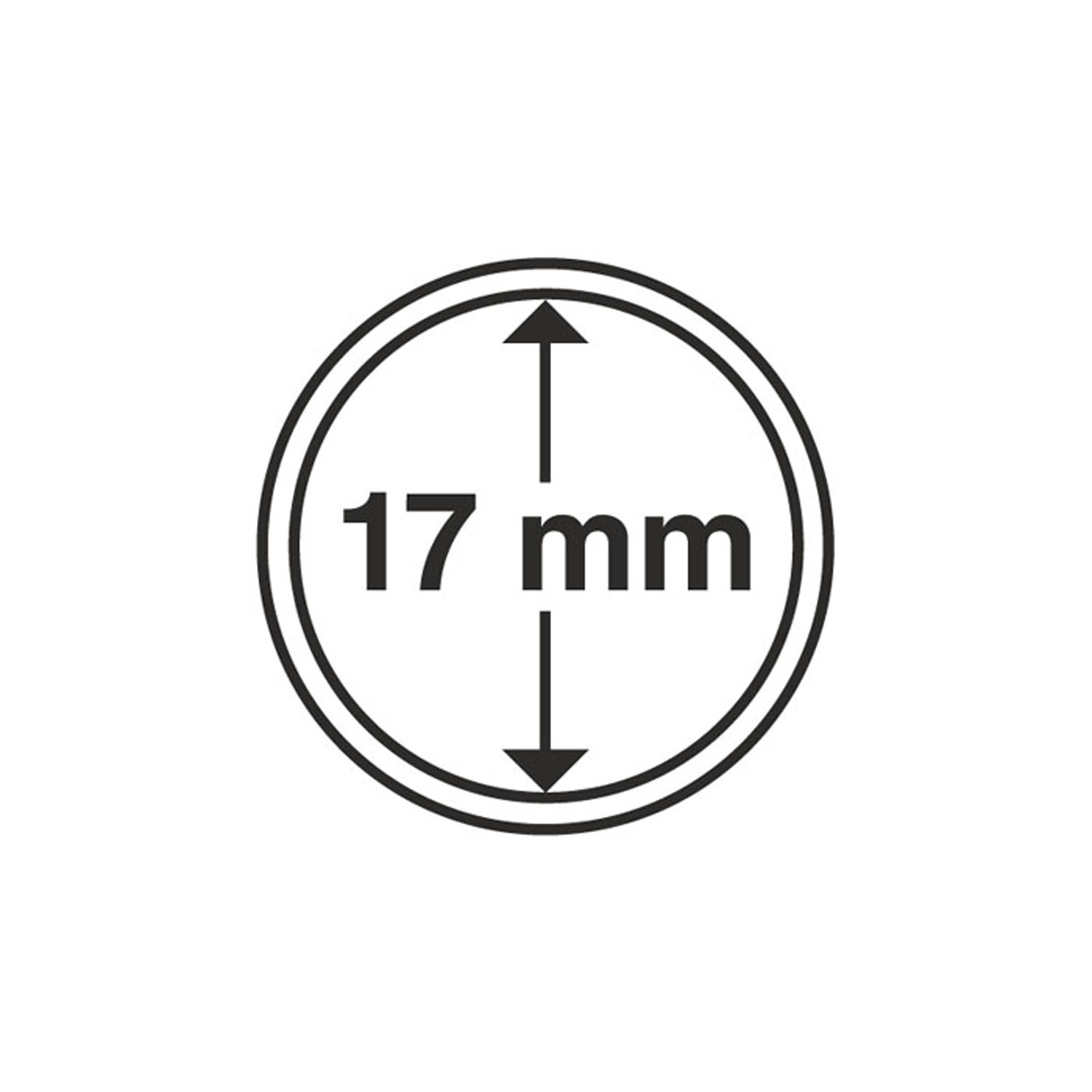 Cápsulas de monedas LEUCHTTURM: la protección ideal para sus mondedas! Cápsulas de alta calidad y plexiglás muy resistente. Se abren fácilmente, cierre seguro. Color: transparente. Diámetro interior: 17 mm, diámetro exterior: 22.5 mm. Altura interior: 2.7 mm.