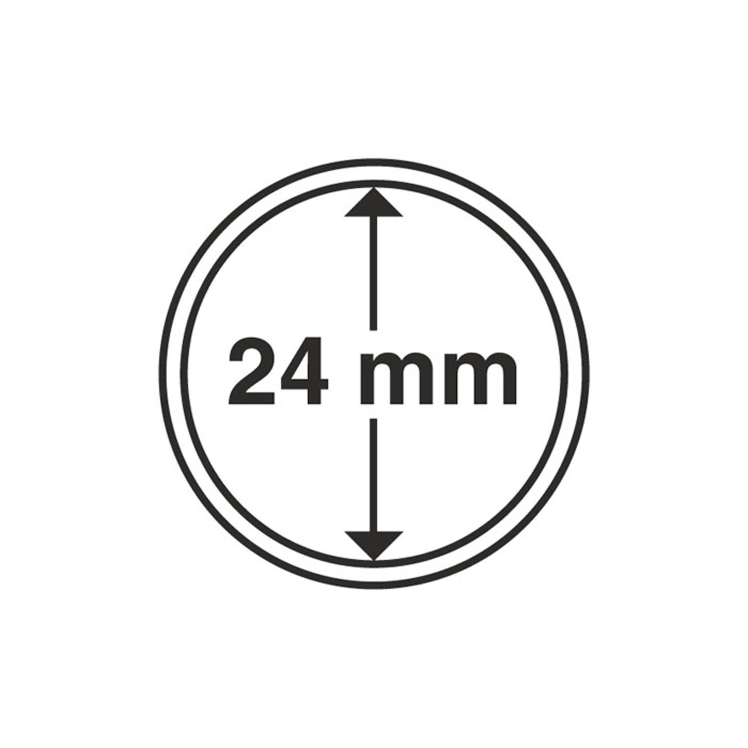 Cápsulas de monedas LEUCHTTURM: la protección ideal para sus mondedas! Cápsulas de alta calidad y plexiglás muy resistente. Se abren fácilmente, cierre seguro. Color: transparente. Diámetro interior: 24 mm, diámetro exterior: 30 mm. Altura interior: 2.7 mm.