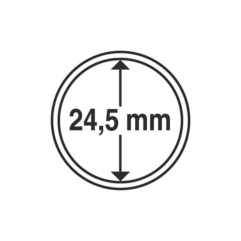 Cápsulas de monedas LEUCHTTURM: la protección ideal para sus mondedas! Cápsulas de alta calidad y plexiglás muy resistente. Se abren fácilmente, cierre seguro. Color: transparente. Diámetro interior: 24.5 mm, diámetro exterior: 30.5 mm. Altura interior: 2.9 mm.