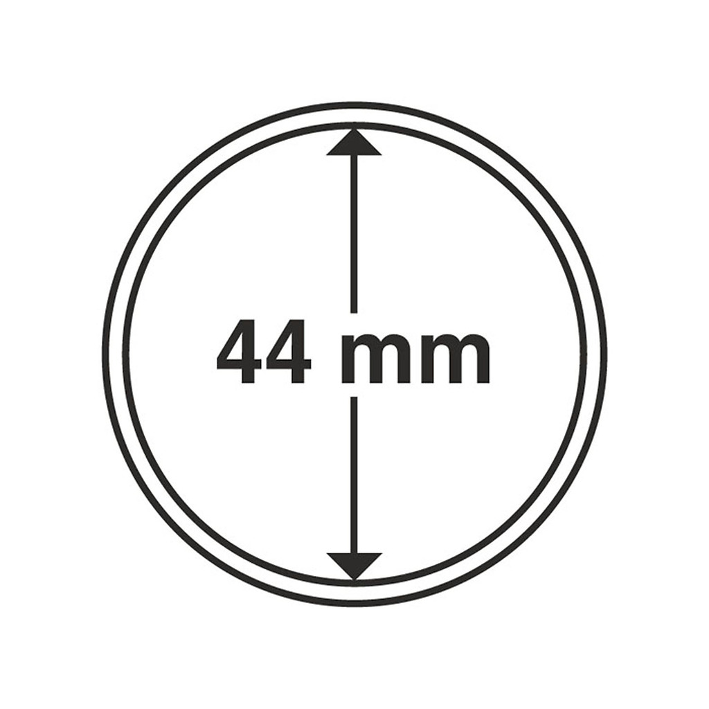 Cápsulas de monedas LEUCHTTURM: la protección ideal para sus mondedas! Cápsulas de alta calidad y plexiglás muy resistente. Se abren fácilmente, cierre seguro. Color: transparente. Diámetro interior: 44 mm, diámetro exterior: 50 mm. Altura interior: 3.8 mm.