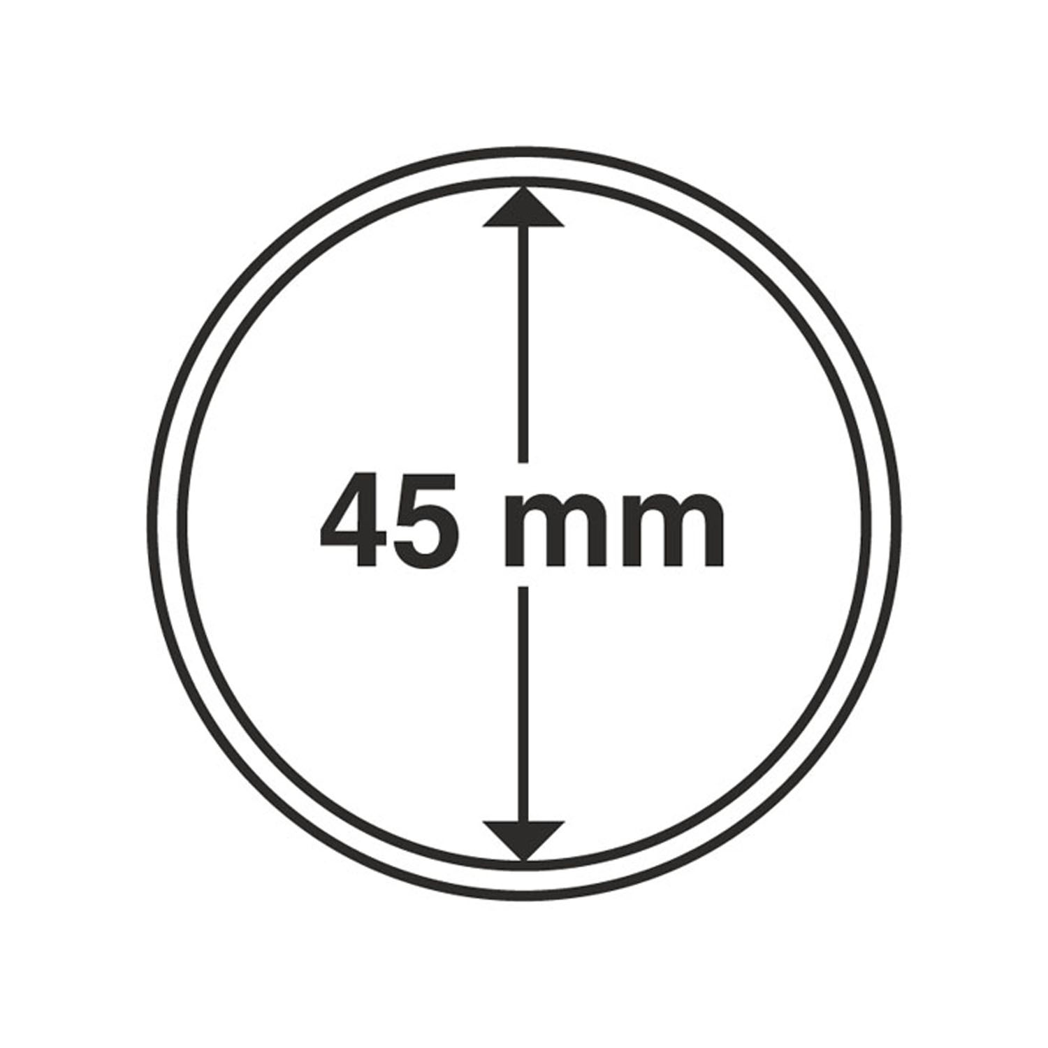 Cápsulas de monedas LEUCHTTURM: la protección ideal para sus mondedas! Cápsulas de alta calidad y plexiglás muy resistente. Se abren fácilmente, cierre seguro. Color: transparente. Diámetro interior: 45 mm, diámetro exterior: 51 mm. Diámetro intérieur: 4.2 mm.
