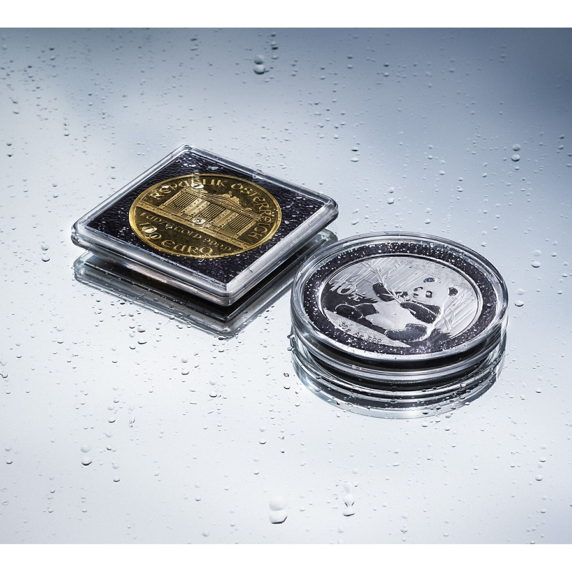 El anillo de espuma de 3 mm de espesor, insertado en las cápsulas, se basa en tecnología Intercept, patentada hace más de 30 años. Las partículas de cobre en el material neutralizan las sustancias nocivas existentes en la atmósfera, protegiendo así a las monedas de la coloración (protección garantizada durante 15 años*). La eficiencia ha sido certificada por las normativas DIN, EN, ISO y ASTM, entre otros. Disponible para todas las monedas de 26 a 41 mm de diámetro (en milímetros).