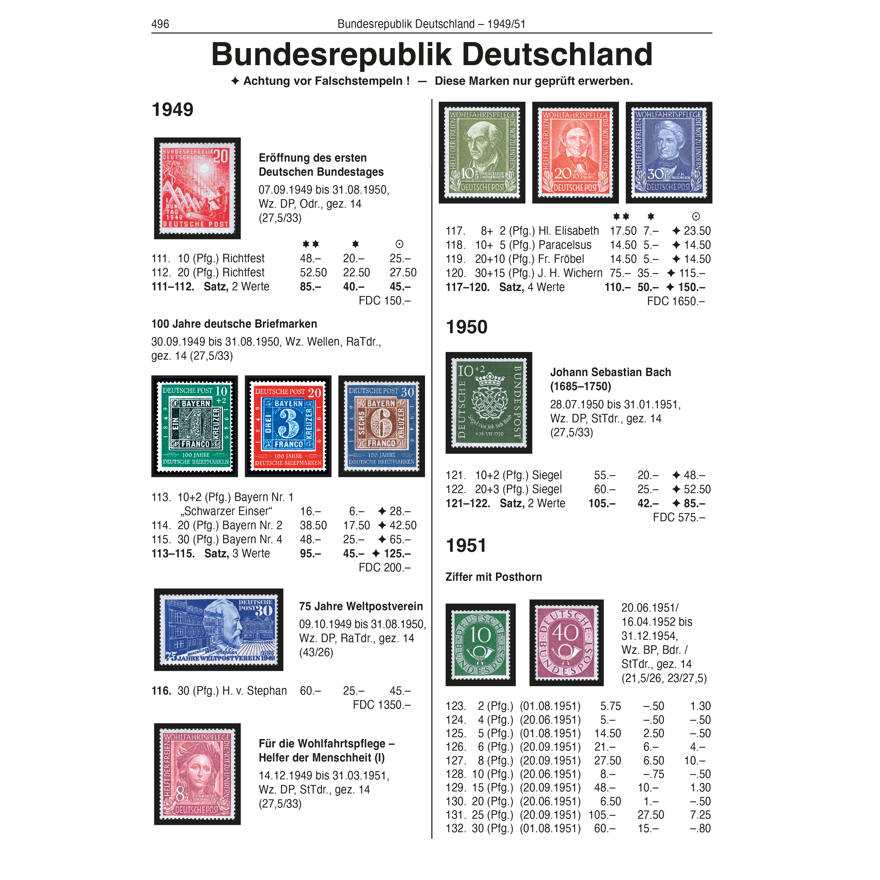El catálogo de sellos del DNK es una obra de referencia sobre todos los sellos alemanes, incluyendo la antigua Alemania, Danzig, Memel, Sarre, las colonias y territorios ocupados de las dos guerras mundiales, así como las emisiones locales. Además de las emisiones principales, también cubre y evalúa las variantes de color, filigrana y perforación más importantes. Las ilustraciones de los diferentes sellos de Berlín, la RDA y la República Federal de Alemania permiten encontrar y clasificar rápidamente las emisiones. El catálogo ofrece a los coleccionistas avanzados una gran cantidad de información en numerosos apéndices, que incluyen se-tenientes y libretas de sellos (Baviera, Reich alemán, Gdansk, Sarre, ...), así como las emisiones conjuntas de la República Federal y Berlín.