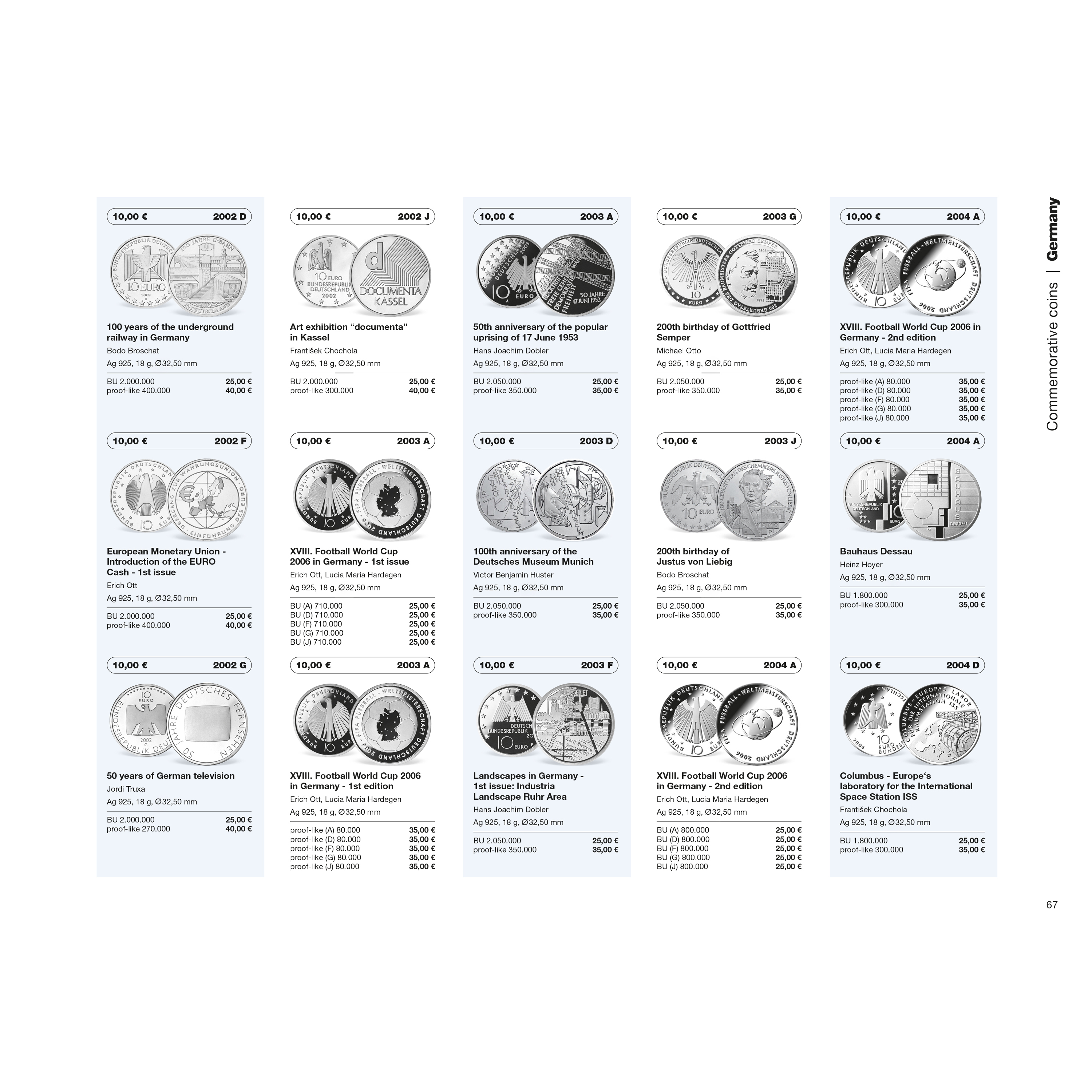 Este catálogo ofrece una presentación detallada de todos los billetes y series oficiales de monedas desde la introducción del euro en los distintos países. Además, encontrará un resumen exhaustivo de todas las monedas conmemorativas europeas de 2 euros, así como un catálogo detallado de los billetes en euros.