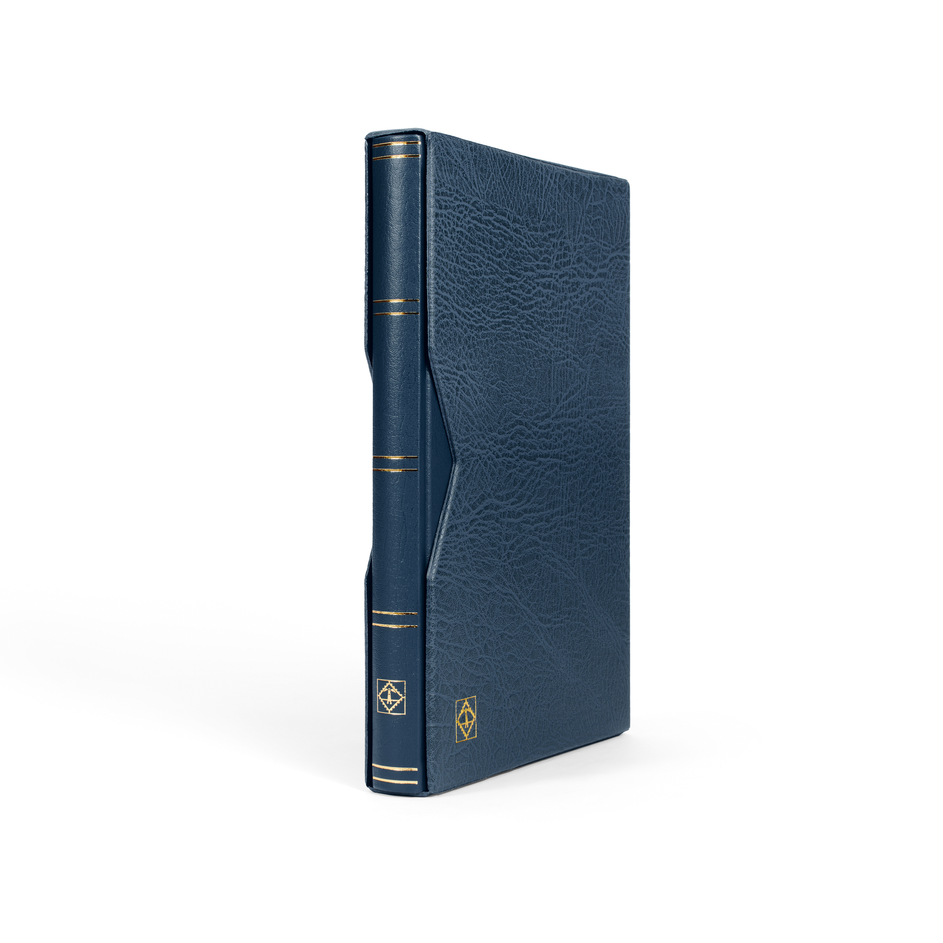 Clasificador Premium, DIN A4, 32 páginas negras, tapa de cuero* acolchada + cajetín, azul