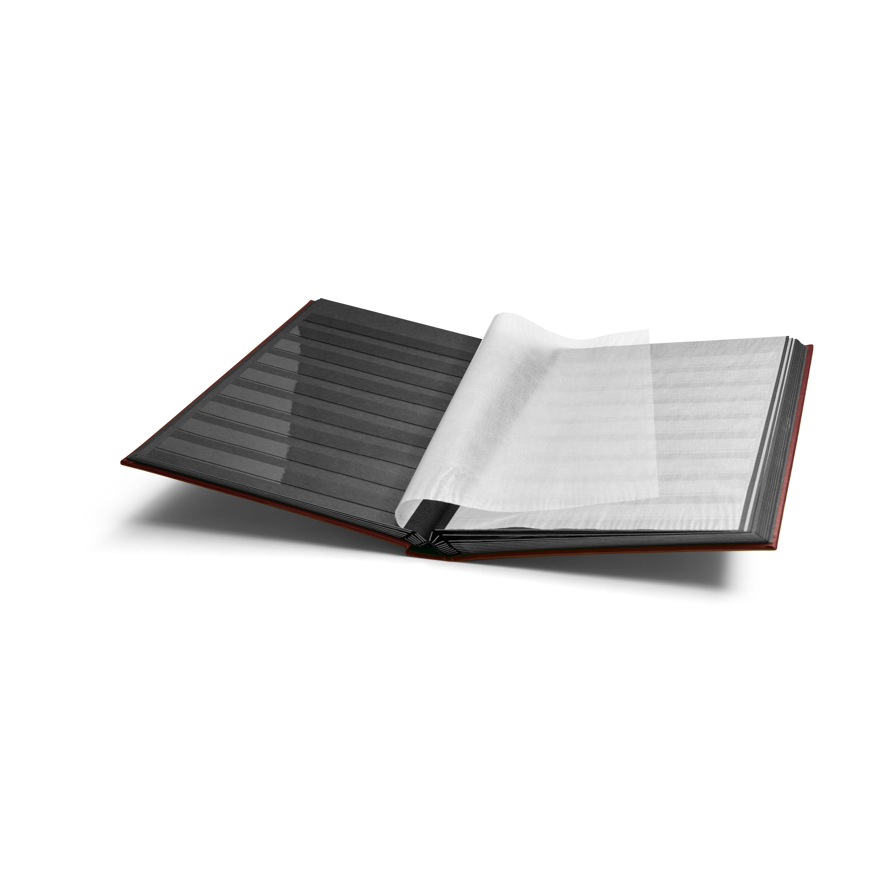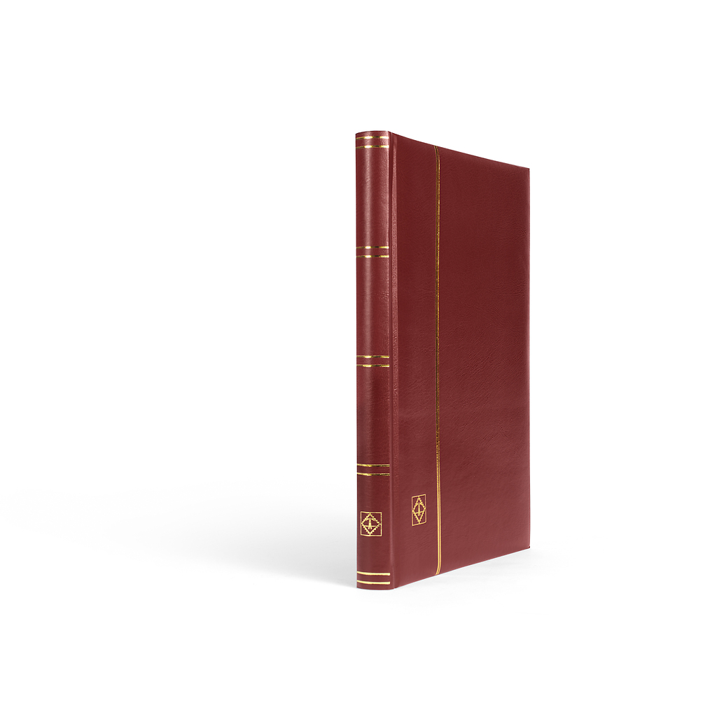 Clasificador COMFORT DIN A4 con 32 páginas negras, tapa acolchada, 9 bandas de papel cristal por página, hojas separadoras dobles, encuadernación de doble articulación.