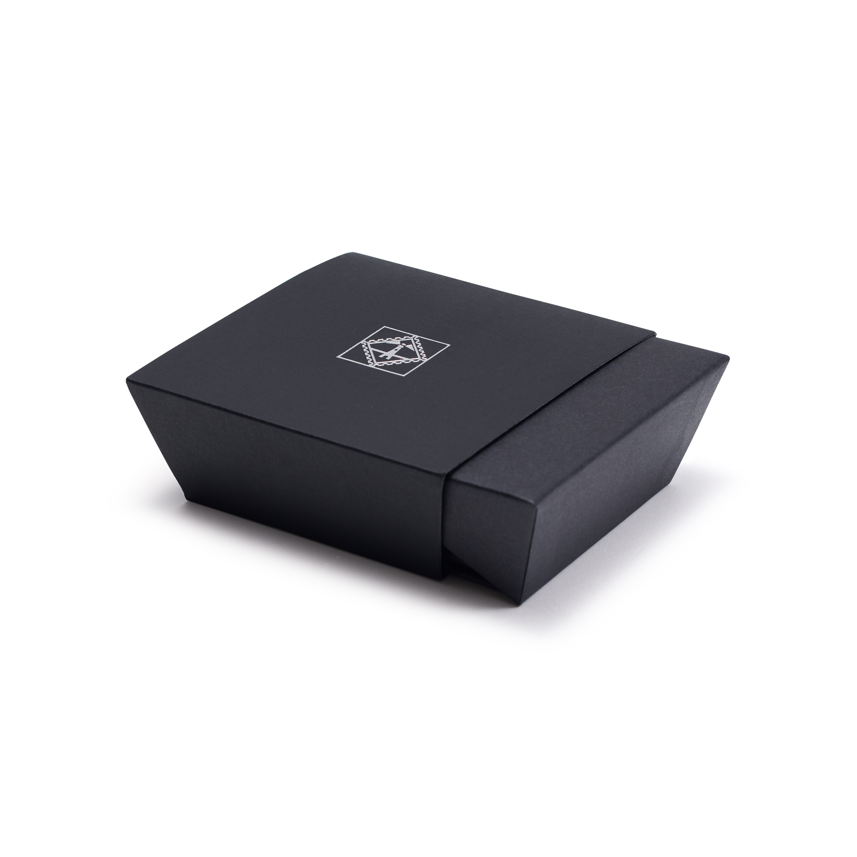 Gracias a un discreto cierre magnético, el estuche queda cerrado con toda seguridad en el transporte. El inserto a medida, en papel moldeado, es la pieza clave del estuche.