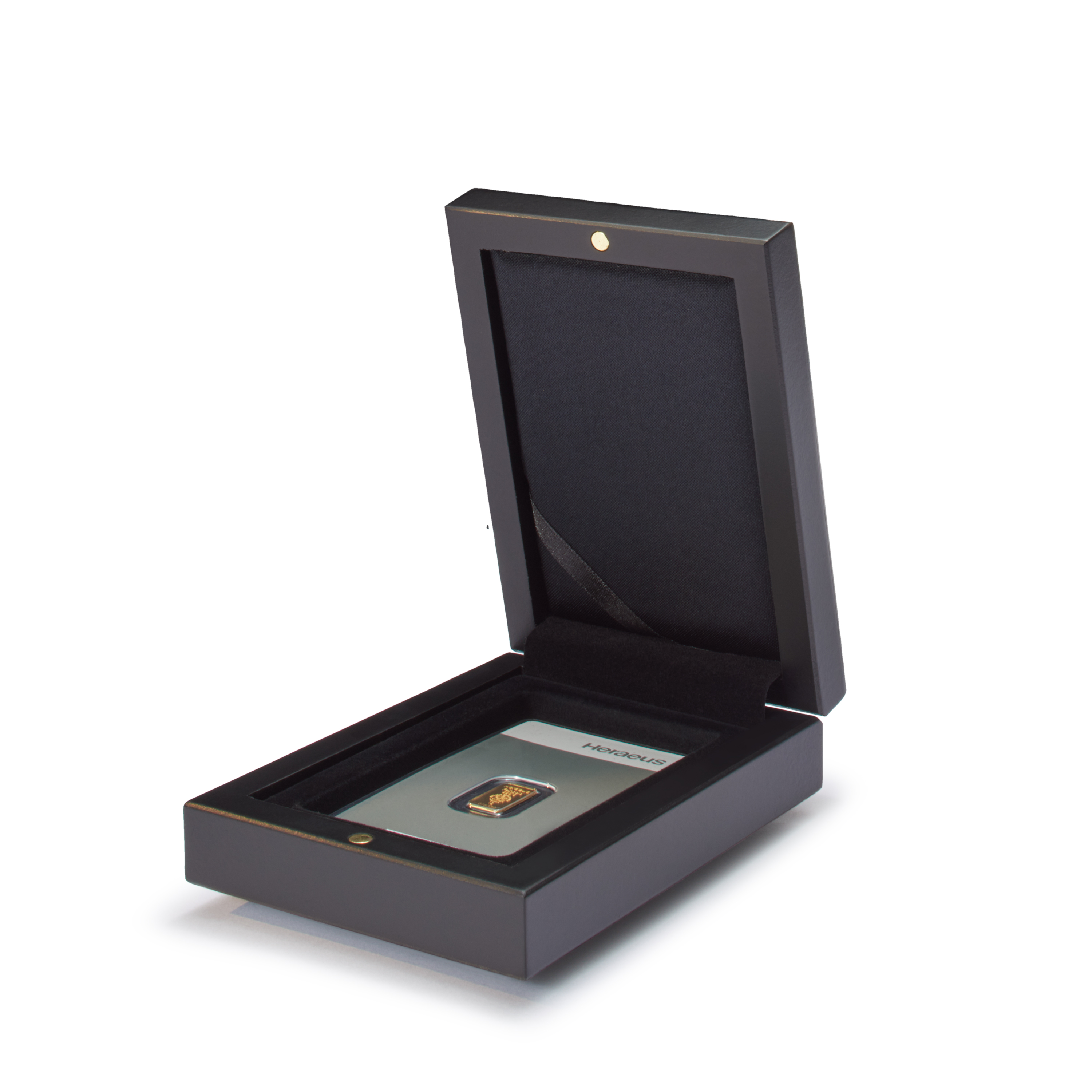 Estuche Volterra para 1 lingote de oro estampado en blíster, negro