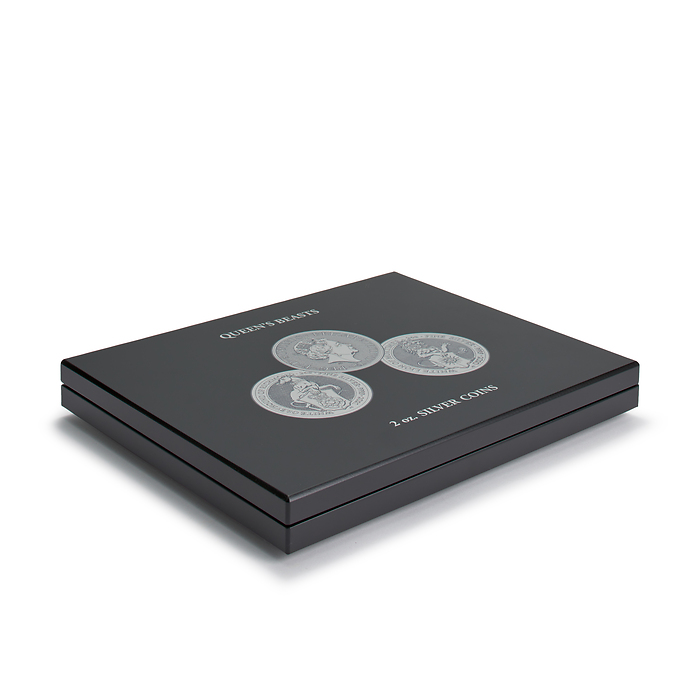 - Con capacidad para 11 monedas de plata de Queen‘s Beasts (2 oz.).
