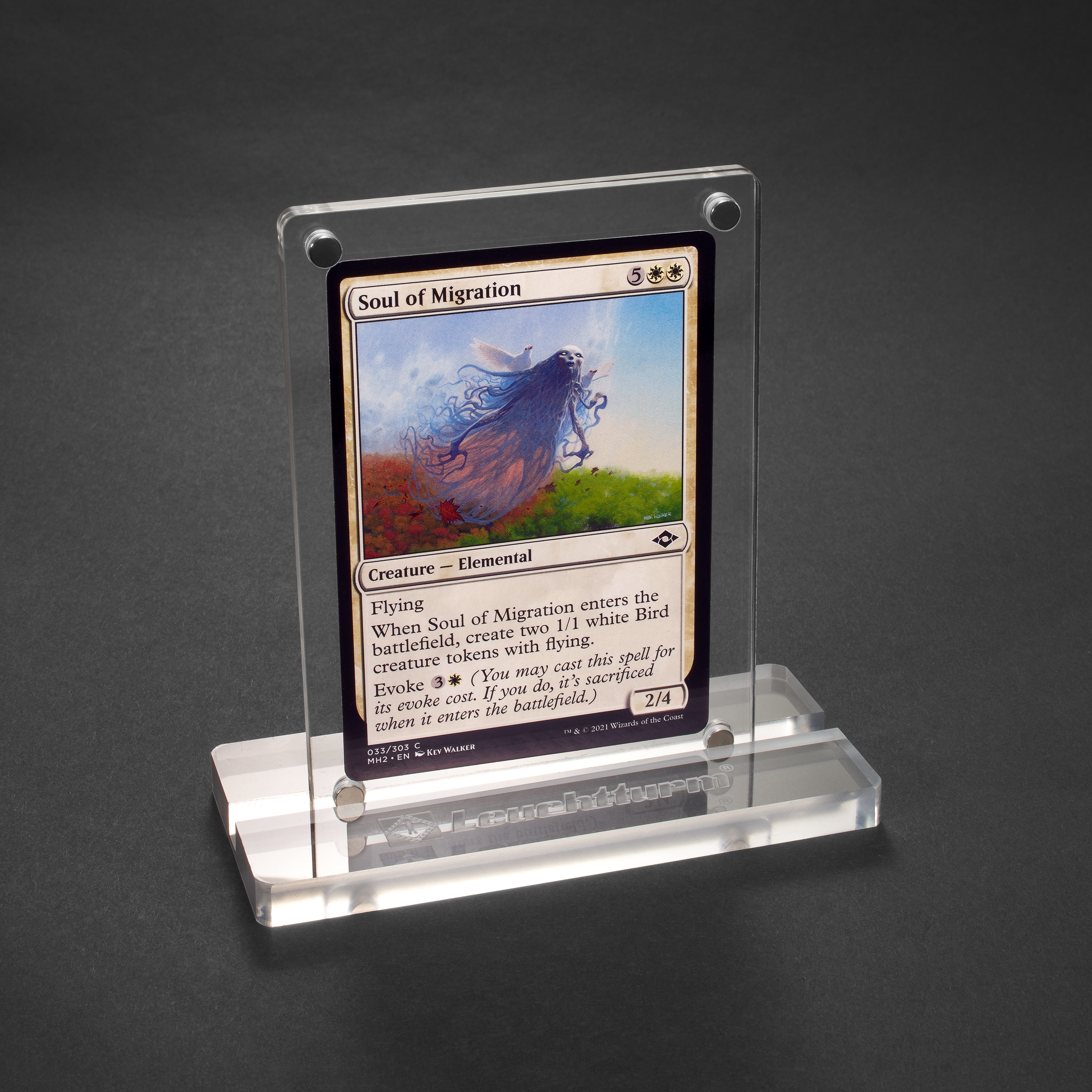 Bienvenido a la solución definitiva para sus cromos favoritos: el expositor acrílico Spectator. Si quiere presentar su carta preferida con estilo, este expositor es justo lo que necesita.