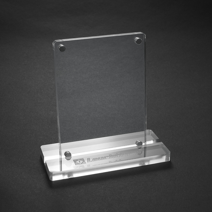 Ya sea en formato vertical u horizontal, este expositor se adapta con flexibilidad a sus necesidades. Y gracias a su robusta base de cristal acrílico, su Spectator se mantiene en pie de forma segura y firme para presentar su colección de la mejor manera.