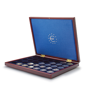 El set con 29 banderas contiene: 29 países del euro incluyendo San Marino, el Vaticano, Mónaco, Andorra El Vaticano y Mónaco, e incluyendo 5 banderas alemanas de las diferentes cecas, 4 fichas en blanco para una creación personal. Las fichas tienen un diámetro de 26 mm, siendo por ello idóneas para cualquier sistema de coleccionismo de monedas de 2 euros, como p. ej. álbumes, bandejas, cápsulas, cajas para monedas, etc.
