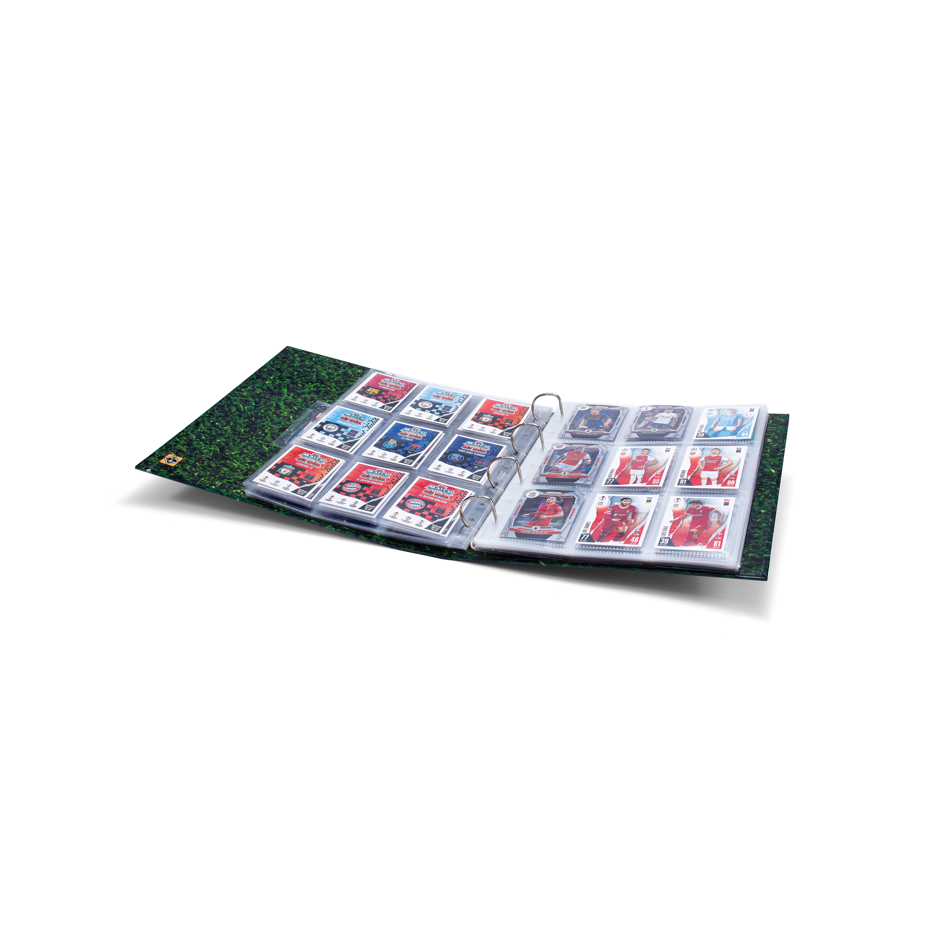 con un formato interior de 65 x 88 mm ofrece espacio para una tarjeta de tamaño estándar, con o sin funda interior. Además, la resistente encuadernación de tapa dura ofrece una protección óptima para hasta 315 tarjetas o 35 fundas en formato A4. Recomendamos nuestras fundas de plástico Grande Pro 32 34 56 (transparentes) o 37 17 73 (negras). Se incluye un juego de pegatinas con banderas nacionales y años para personalizar su colección. El álbum de cromos de fútbol Franz es perfecto para todos los cromos populares como Bundesliga Match Attax, Champions League Match Attax, Match Attax Extra, Topps EURO 2024 Match Attax, Panini Top Class, Panini World Class o Panini Prizm Premier League. Formato exterior: 300 x 325 x 58 mm.
