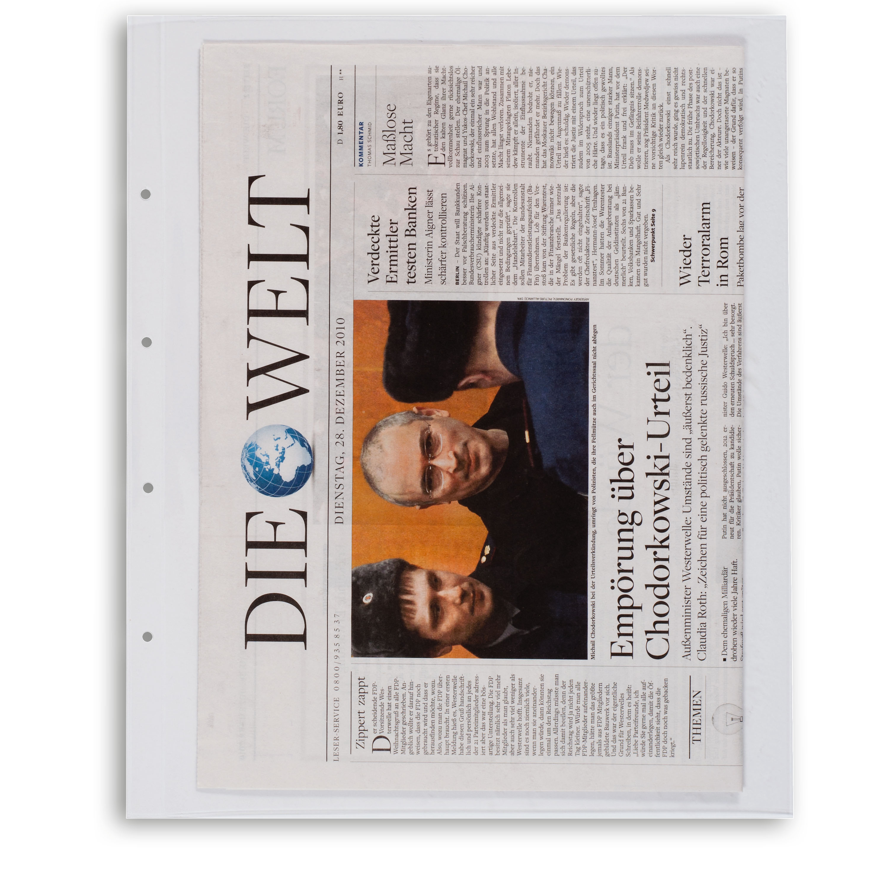 Fundas de plástico transparentes ideales para guardar documentos de hasta 330 x 420 mm, p. ej. formato A3. Las fundas son campatibles con el álbum KANZLEI. No deterioran los documentos, las fundas tienen la ventaja de estar fabricadas con poliéster (sin plastificantes ni ácidos), lo que garantiza, junto a una presentación perfecta, una protección máxima de sus objetos de coleccionismo. Formato: 360 x 430 mm.