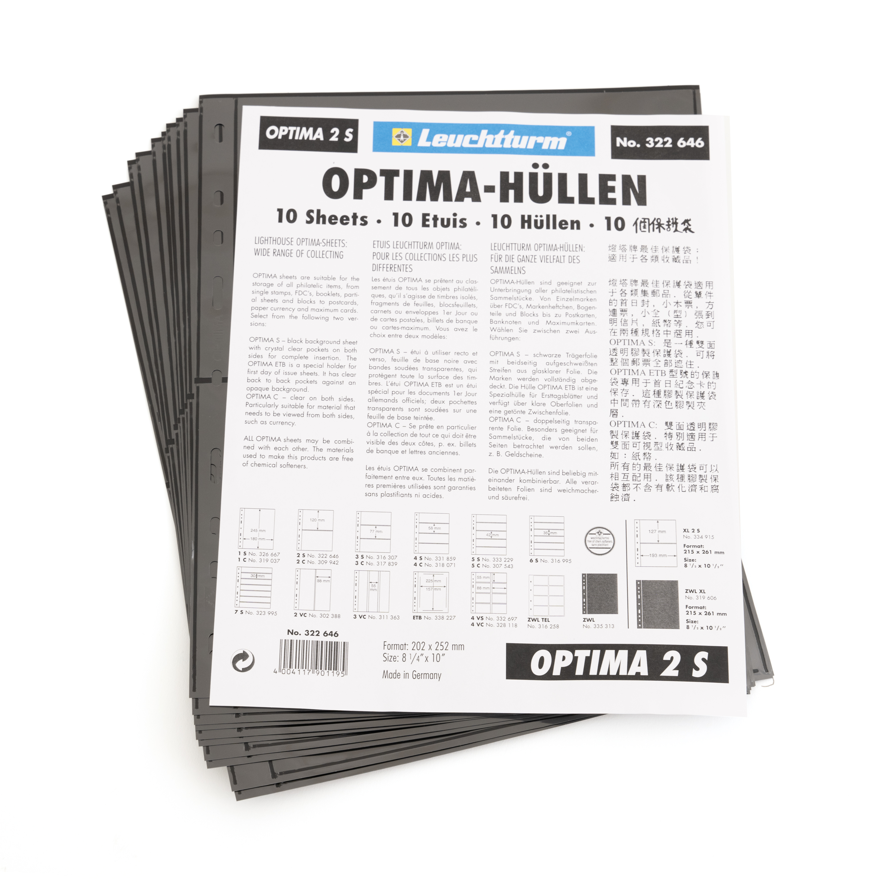 Número de artículo: 322646Hojas de plástico OPTIMA en formato 202 x 252 mm, 2 divisiones para formatos hasta 180 x 120 mm. Color: negro.
