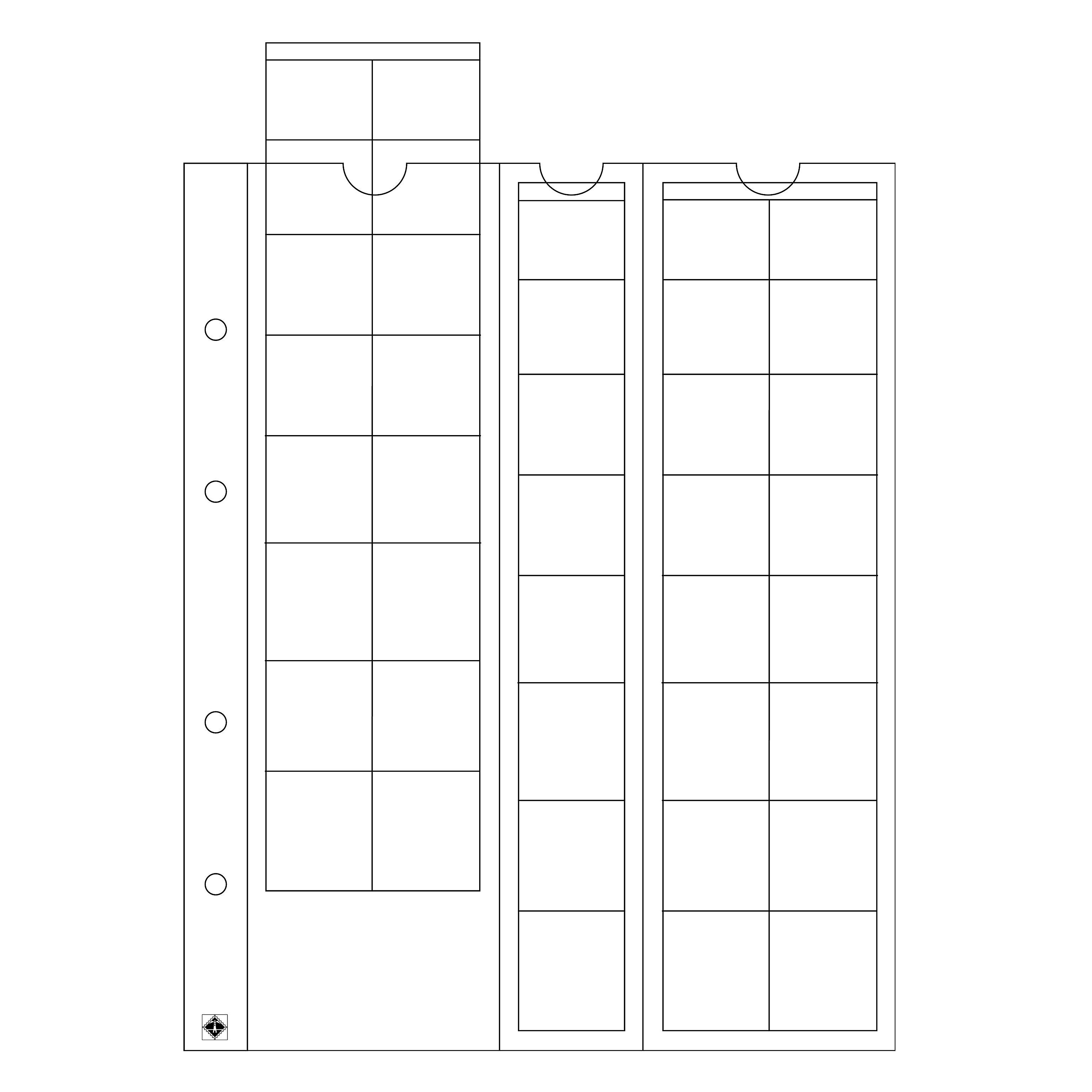 Nuestras fundas para monedas altamente transparentes y dimensionalmente estables en formato Optima (202 x 252 mm) ofrecen espacio para hasta 40 monedas con un diámetro de hasta 26 mm, ideal para juegos de euros. Estas fundas transparentes tienen compartimentos de diferentes tamaños que no contienen plastificantes ni ácidos y sirven para guardar y presentar sus monedas de forma segura. Hay 8 divisiones de fundas, las de 50 x 50 mm y 67 x 67 mm están especialmente diseñadas para portamonedas.
