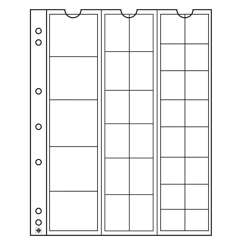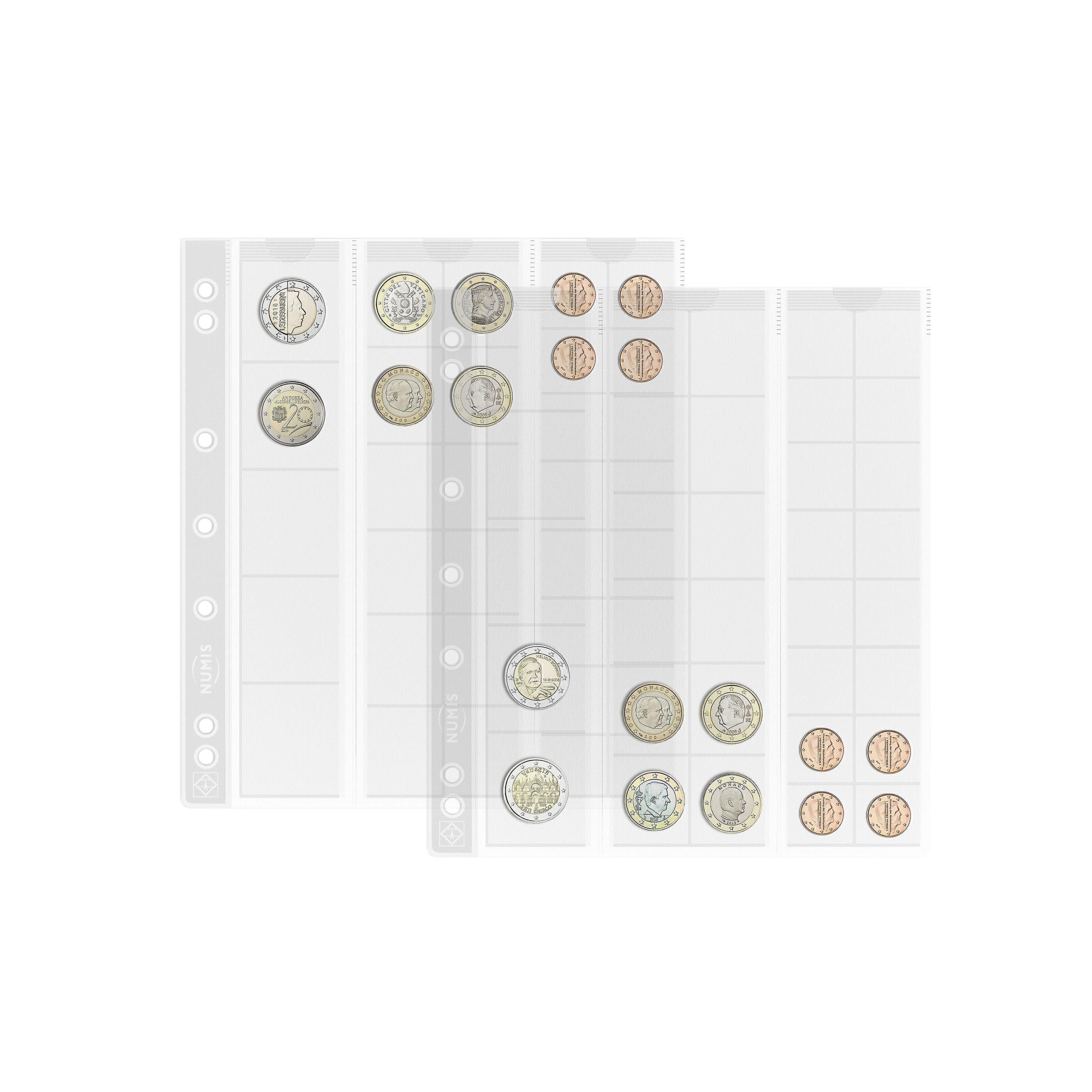 Hojas para monedas Numis, de 33 divisiones de Varios Ø, paquete de 5