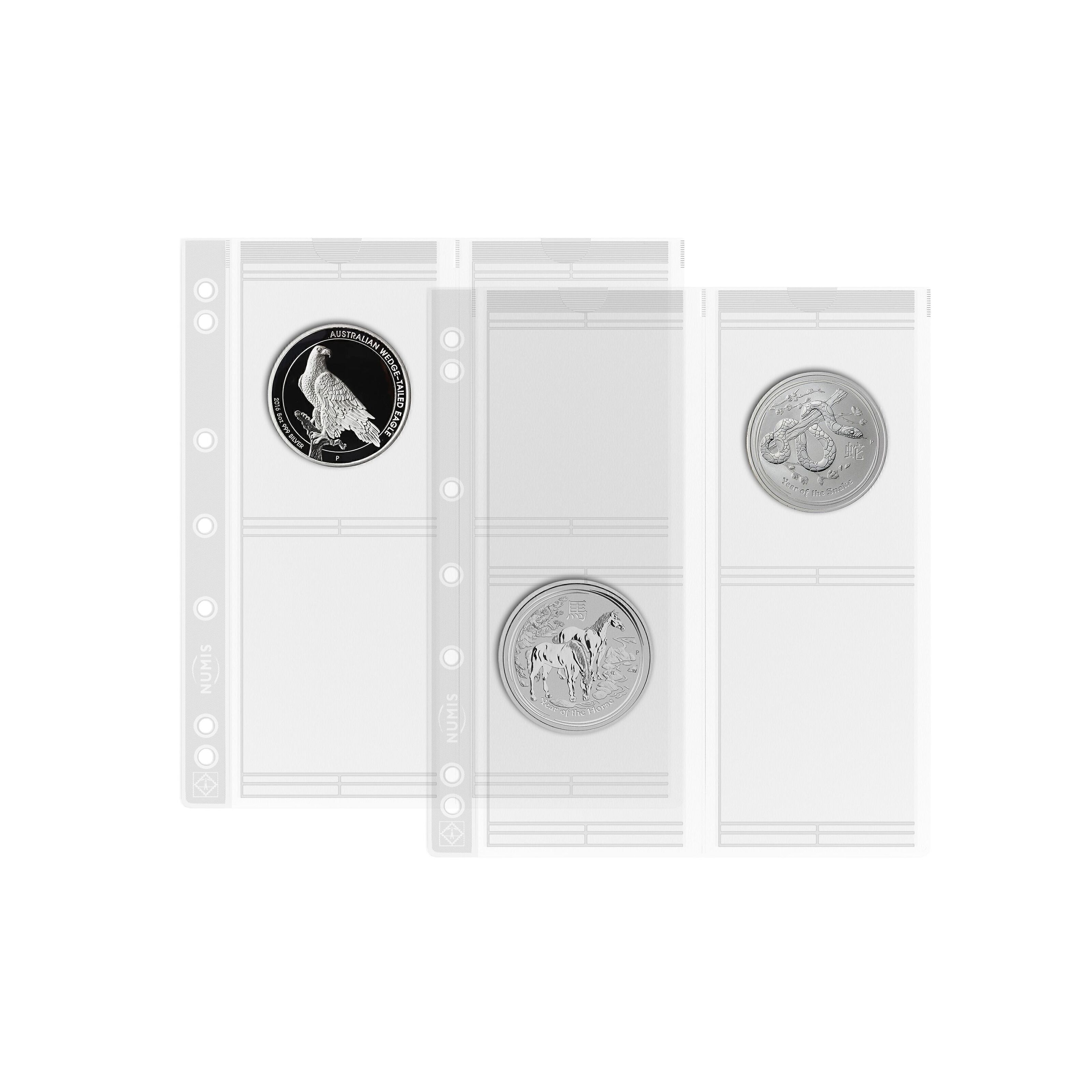 Hojas para monedas NUMIS, de 4 divisiones de 66 mm Ø, paquete de 5