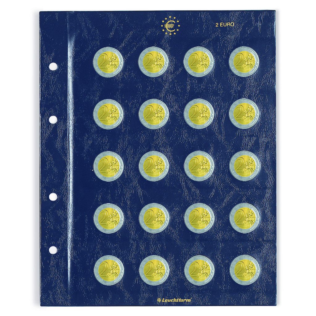 Recomendamos las hojas azules Vista para guardar monedas. Este álbum está equipado con una perforación de 4 anillas y ofrece espacio para un total de 20 monedas europeas de 2 euros.