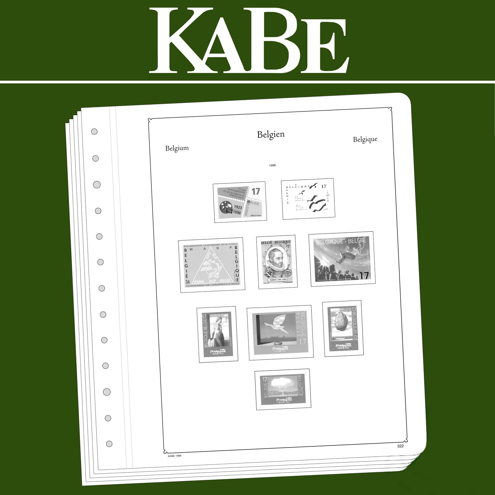 Los álbumes preimpresos KABE (formato 275 x 310 mm) están impresos en cartón de madera sin ácidos (175 g/m2), resistente al envejecimiento y con impresión offset en blanco y negro que reproduce fielmente los detalles. De esta forma, usted puede encontrar rápidamente los sellos que todavía le faltan. Sobre la impresión de los sellos y con el mismo tamaño, están pegados filoestuches-SF fabricados en poliestirol transparente, antireflectante y sin plastificantes. Estos filoestuches sujetan los sellos, a la vez que ofrecen una máxima protección contra el polvo y la humedad. La articulación doble de lino facilita la apertura de las hojas y ayuda para su mejor conservación.