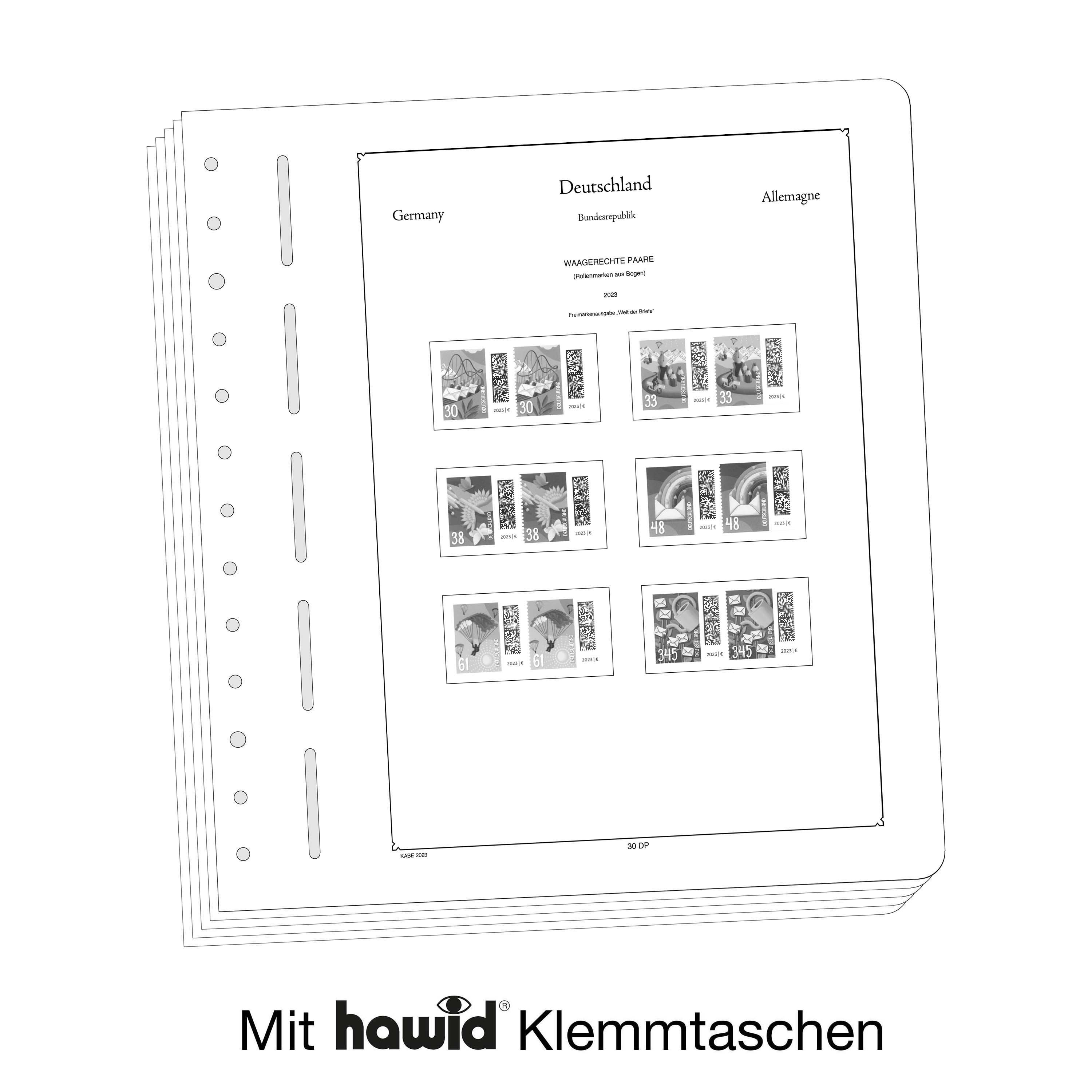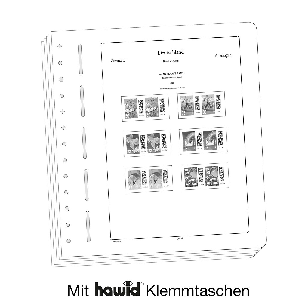 Los álbumes preimpresos KABE (formato 275 x 310 mm) están impresos en cartón de madera sin ácidos (175 g/m2), resistente al envejecimiento y con impresión offset en blanco y negro que reproduce fielmente los detalles. De esta forma, usted puede encontrar rápidamente los sellos que todavía le faltan. Sobre la impresión de los sellos y con el mismo tamaño, están pegados filoestuches-SF fabricados en poliestirol transparente, antireflectante y sin plastificantes. Estos filoestuches sujetan los sellos, a la vez que ofrecen una máxima protección contra el polvo y la humedad. La articulación doble de lino facilita la apertura de las hojas y ayuda para su mejor conservación.