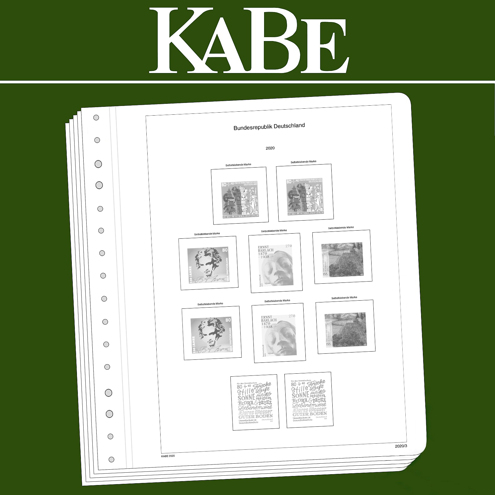 Los álbumes preimpresos KABE (formato 275 x 310 mm) están impresos en cartón de madera sin ácidos (175 g/m2), resistente al envejecimiento y con impresión offset en blanco y negro que reproduce fielmente los detalles. De esta forma, usted puede encontrar rápidamente los sellos que todavía le faltan. Sobre la impresión de los sellos y con el mismo tamaño, están pegados filoestuches-SF fabricados en poliestirol transparente, antireflectante y sin plastificantes. Estos filoestuches sujetan los sellos, a la vez que ofrecen una máxima protección contra el polvo y la humedad. La articulación doble de lino facilita la apertura de las hojas y ayuda para su mejor conservación.