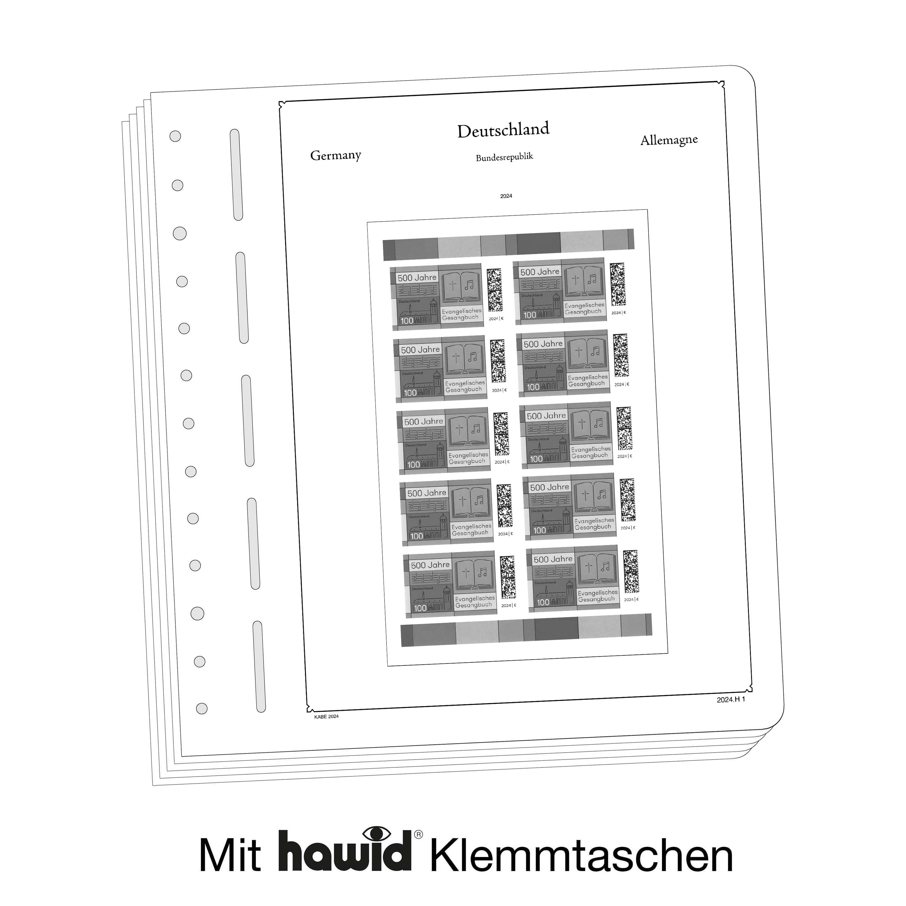 Los álbumes preimpresos KABE (formato 275 x 310 mm) están impresos en cartón de madera sin ácidos (175 g/m2), resistente al envejecimiento y con impresión offset en blanco y negro que reproduce fielmente los detalles. De esta forma, usted puede encontrar rápidamente los sellos que todavía le faltan. Sobre la impresión de los sellos y con el mismo tamaño, están pegados filoestuches-SF fabricados en poliestirol transparente, antireflectante y sin plastificantes. Estos filoestuches sujetan los sellos, a la vez que ofrecen una máxima protección contra el polvo y la humedad. La articulación doble de lino facilita la apertura de las hojas y ayuda para su mejor conservación.