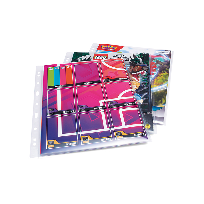 Además, las fundas de plástico de la zona de tarjetas y cromos ofrecen una solución de primera clase para guardar tableros de juego, listas de control y revistas con una calidad cristalina. Gracias a la perforación combinada de 8 cm, son ideales para utilizar con nuestros álbumes Pro (art. 369504, 368379, 369503).