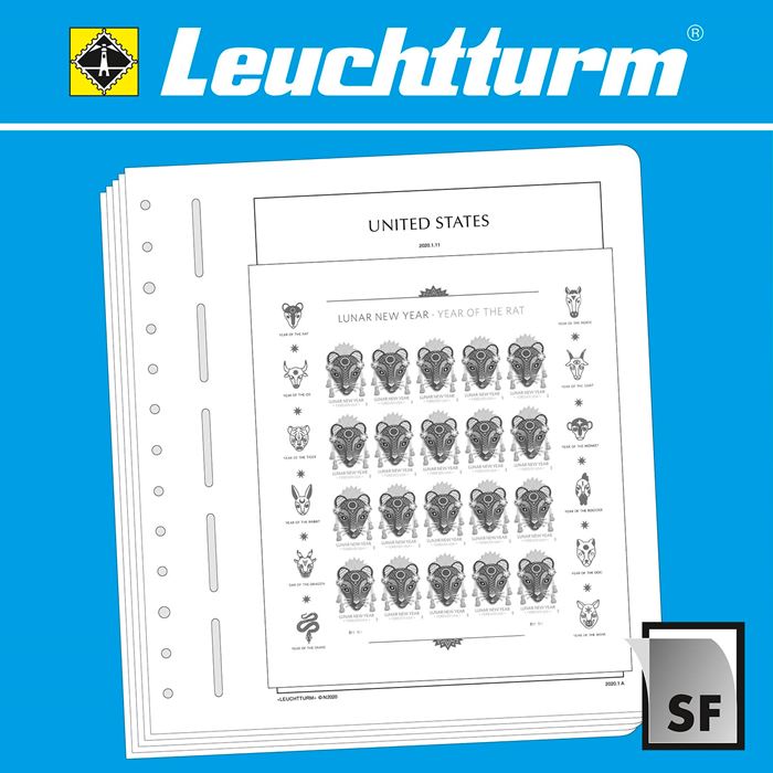 Los álbumes preimpresos LEUCHTTURM (formato 270 x 297 mm, perforación de 13 agujeros) están impresos en cartón de madera sin ácidos(170 g/m2), resistente al envejecimiento y con impresión offset en blanco y negro que reproduce fielmente los detalles. De esta forma, usted puede encontrar rápidamente los sellos que todavía le faltan. Sobre la impresión de los sellos y con el mismo tamaño, están pegados filoestuches-SF fabricados en poliestirol transparente, antireflectante y sin plastificantes. Estos filoestuches sujetan los sellos, a la vez que ofrecen una máxima protección contra el polvo y la humedad.