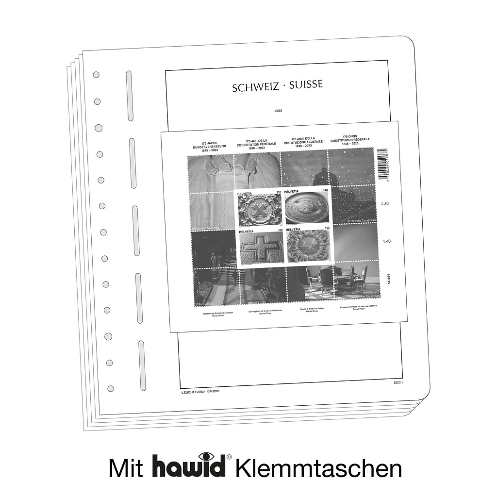 Los álbumes preimpresos LEUCHTTURM (formato 270 x 297 mm, perforación de 13 agujeros) están impresos en cartón de madera sin ácidos (170 g/m2), resistente al envejecimiento y con impresión offset en blanco y negro que reproduce fielmente los detalles. De esta forma, usted puede encontrar rápidamente los sellos que todavía le faltan. Sobre la impresión de los sellos y con el mismo tamaño, están pegados filoestuches-SF fabricados en poliestirol transparente, antireflectante y sin plastificantes. Estos filoestuches sujetan los sellos, a la vez que ofrecen una máxima protección contra el polvo y la humedad.