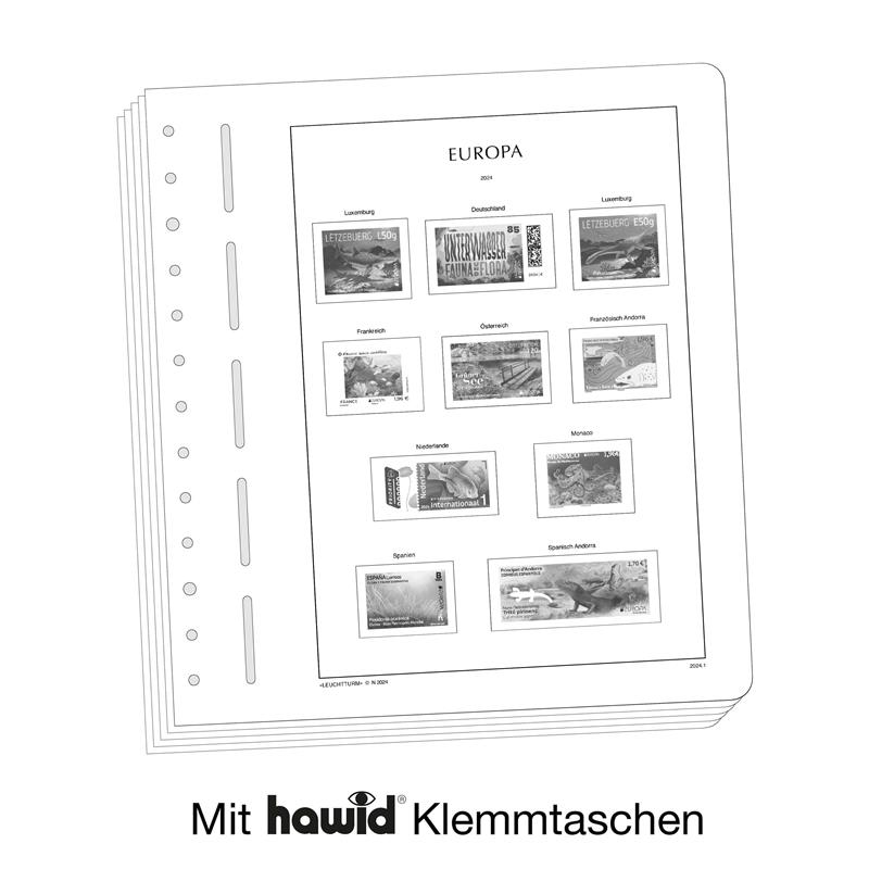 Los álbumes preimpresos LEUCHTTURM (formato 270 x 297 mm, perforación de 13 agujeros) están impresos en cartón de madera sin ácidos(170 g/m2), resistente al envejecimiento y con impresión offset en blanco y negro que reproduce fielmente los detalles. De esta forma, usted puede encontrar rápidamente los sellos que todavía le faltan. Sobre la impresión de los sellos y con el mismo tamaño, están pegados filoestuches-SF fabricados en poliestirol transparente, antireflectante y sin plastificantes. Estos filoestuches sujetan los sellos, a la vez que ofrecen una máxima protección contra el polvo y la humedad.
