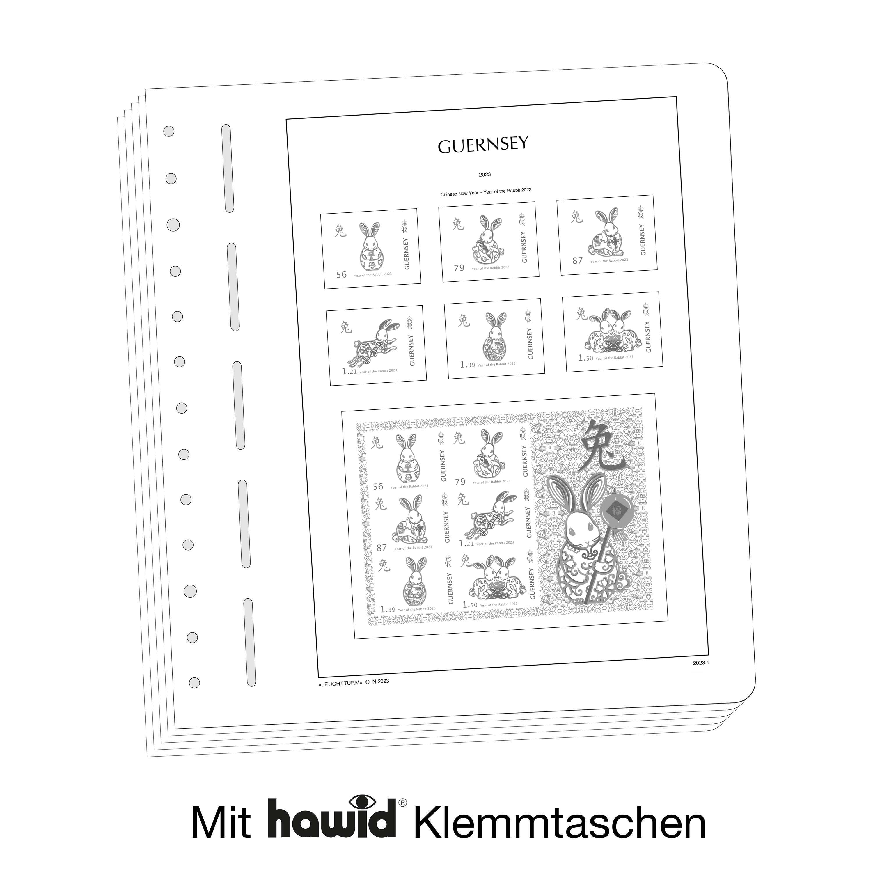 Los álbumes preimpresos LEUCHTTURM (formato 270 x 297 mm, perforación de 13 agujeros) están impresos en cartón de madera sin ácidos (170 g/m2), resistente al envejecimiento y con impresión offset en blanco y negro que reproduce fielmente los detalles. De esta forma, usted puede encontrar rápidamente los sellos que todavía le faltan. Sobre la impresión de los sellos y con el mismo tamaño, están pegados filoestuches-SF fabricados en poliestirol transparente, antireflectante y sin plastificantes. Estos filoestuches sujetan los sellos, a la vez que ofrecen una máxima protección contra el polvo y la humedad.
