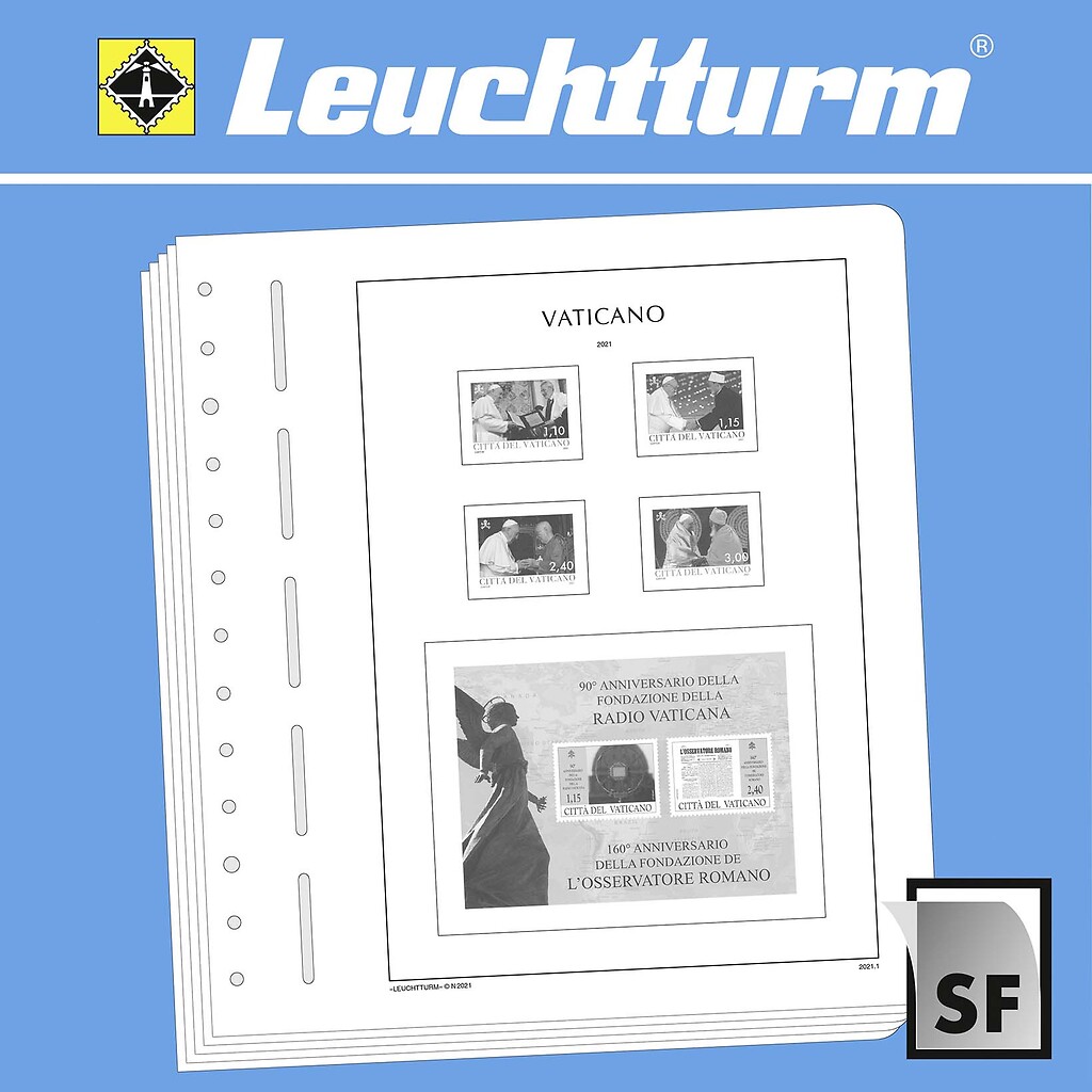 Los álbumes preimpresos LEUCHTTURM (formato 270 x 297 mm, perforación de 13 agujeros) están impresos en cartón de madera sin ácidos (170 g/m2), resistente al envejecimiento y con impresión offset en blanco y negro que reproduce fielmente los detalles. De esta forma, usted puede encontrar rápidamente los sellos que todavía le faltan. Sobre la impresión de los sellos y con el mismo tamaño, están pegados filoestuches-SF fabricados en poliestirol transparente, antireflectante y sin plastificantes. Estos filoestuches sujetan los sellos, a la vez que ofrecen una máxima protección contra el polvo y la humedad.