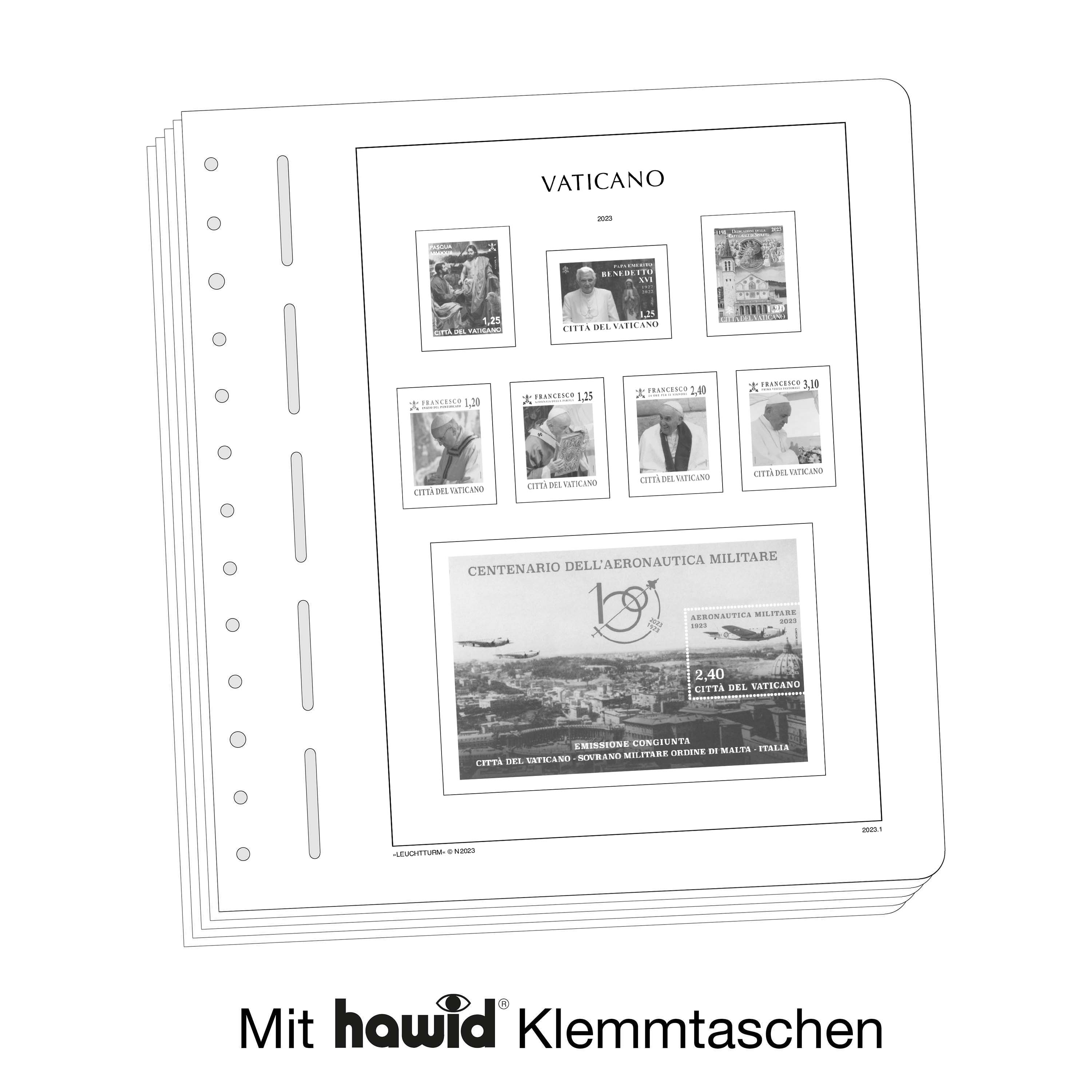 Los álbumes preimpresos LEUCHTTURM (formato 270 x 297 mm, perforación de 13 agujeros) están impresos en cartón de madera sin ácidos (170 g/m2), resistente al envejecimiento y con impresión offset en blanco y negro que reproduce fielmente los detalles. De esta forma, usted puede encontrar rápidamente los sellos que todavía le faltan. Sobre la impresión de los sellos y con el mismo tamaño, están pegados filoestuches-SF fabricados en poliestirol transparente, antireflectante y sin plastificantes. Estos filoestuches sujetan los sellos, a la vez que ofrecen una máxima protección contra el polvo y la humedad.