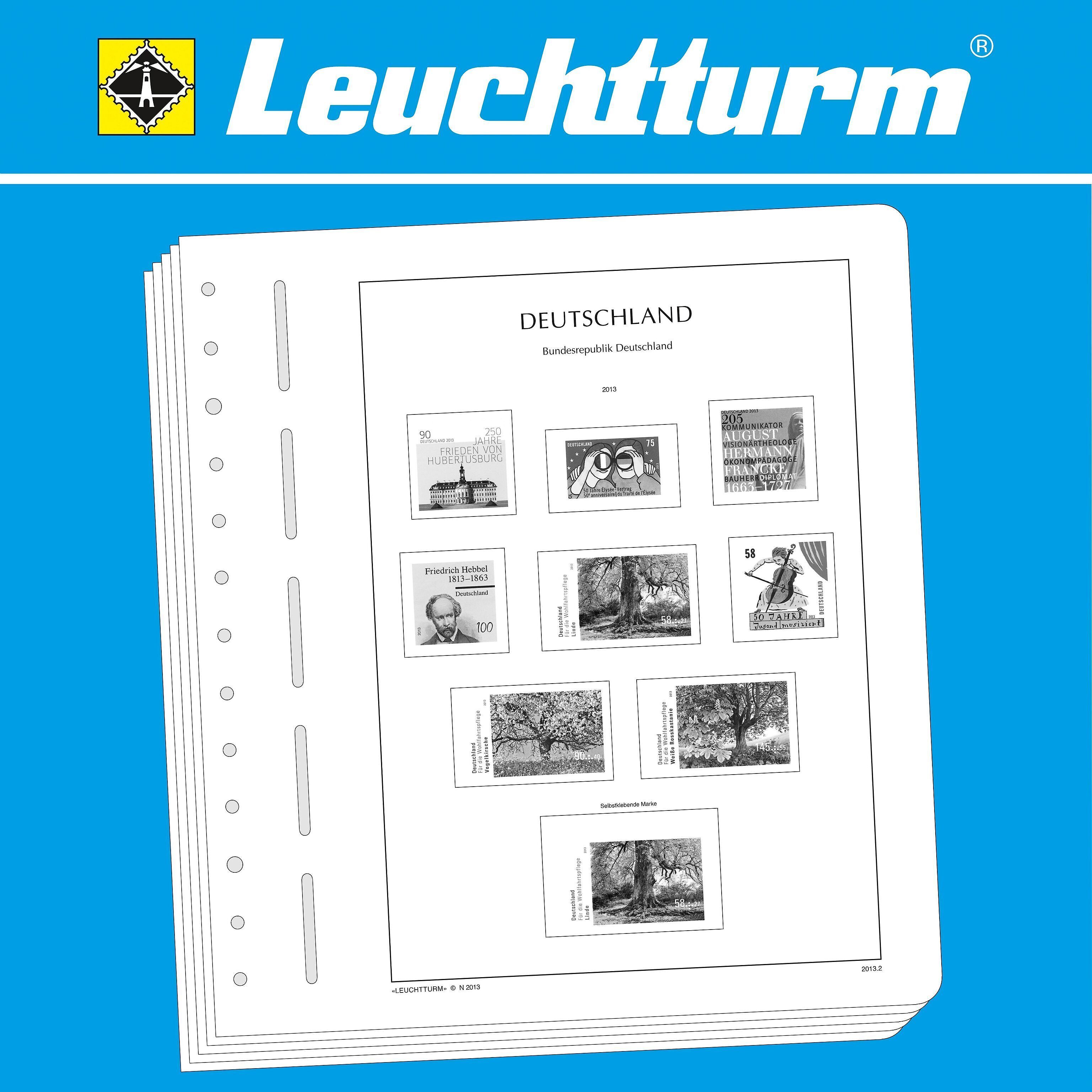 Los álbumes preimpresos LEUCHTTURM (formato 270 x 297 mm, perforación de 13 agujeros) están impresos en cartón de madera sin ácidos (170 g/m2), resistente al envejecimiento y con impresión offset en blanco y negro que reproduce fielmente los detalles. De esta forma, usted puede encontrar rápidamente los sellos que todavía le faltan. Sobre la impresión de los sellos y con el mismo tamaño, están pegados filoestuches-SF fabricados en poliestirol transparente, antireflectante y sin plastificantes. Estos filoestuches sujetan los sellos, a la vez que ofrecen una máxima protección contra el polvo y la humedad.