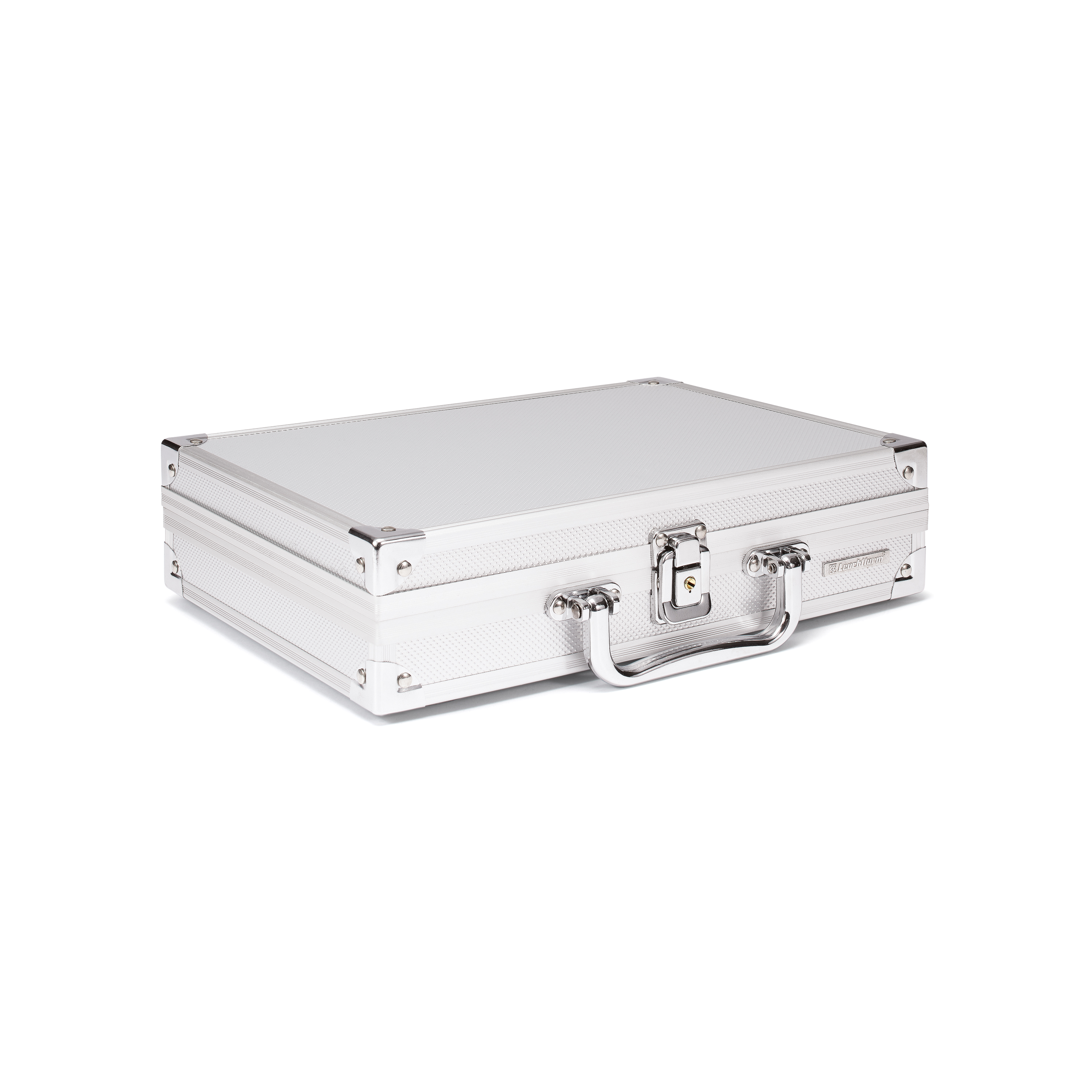 Maletín de 5 filas para guardar 650 cartones de monedas o 150 cápsulas de monedas QUADRUM. Se incluyen 5 “fijadores” para fijar las filas que no estén completamente llenas (para que los cartones no se vuelquen). Totalmente forrado con terciopelo negro. Con cerradura (2 llaves). Robusto armazón reforzado con protectores de aluminio en las esquinas. Dispone de un asa muy cómoda y de bonito diseño. Este maletín es ideal para transportar sus cartones. Tamaño exterior: 292 x 74 x 238 mm.