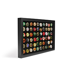 Marco de color negro para exponer 60 placas de Cava y chapas de envases.