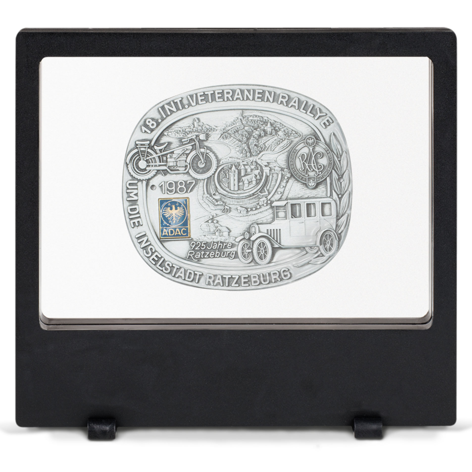 Con este extraordinario marco conseguirás que tus objetos de coleccionismo destaquen especialmente, por ejemplo, monedas, sellos, minerales, relojes, condecoraciones y muchos más. El uso es sencillísimo: Abrir el marco, insertar el objeto, cerrar el marco – ya está! Gracias a 2 membranas transparentes y flexibles, el objeto queda encerrado y parece como si flotara dentro del marco. El marco se puede colocar como se desee. El objeto puede verse por ambos lados. Incluye 2 pies de apoyo. De plástico.
