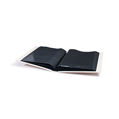 El álbum ofrece espacio para un máximo de 148 billetes y entradas y garantiza su almacenamiento seguro. Dispone de un total de 26 fundas rígidas de doble cara fabricadas en plástico de alta calidad sin plastificantes con capas intermedias negras que muestran perfectamente los billetes. De ellas, 24 fundas están equipadas con tres bolsillos por lado (dimensiones interiores 220 x 98 mm). Los bolsillos están abiertos en la parte superior para poder introducir fácilmente los billetes. Dos bolsillos adicionales de doble cara en el centro del álbum ofrecen un bolsillo por lado (dimensiones interiores 220 x 304 mm) y proporcionan espacio suficiente para billetes extragrandes, formatos especiales o folletos de formato A4.
